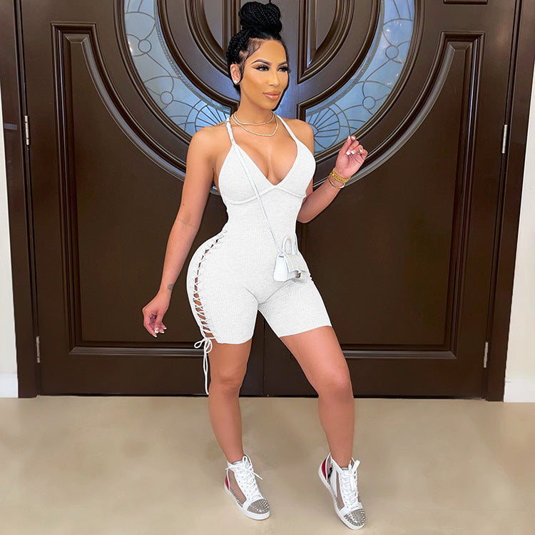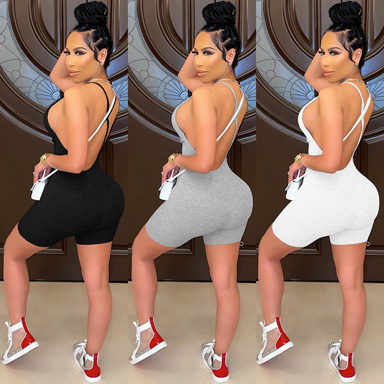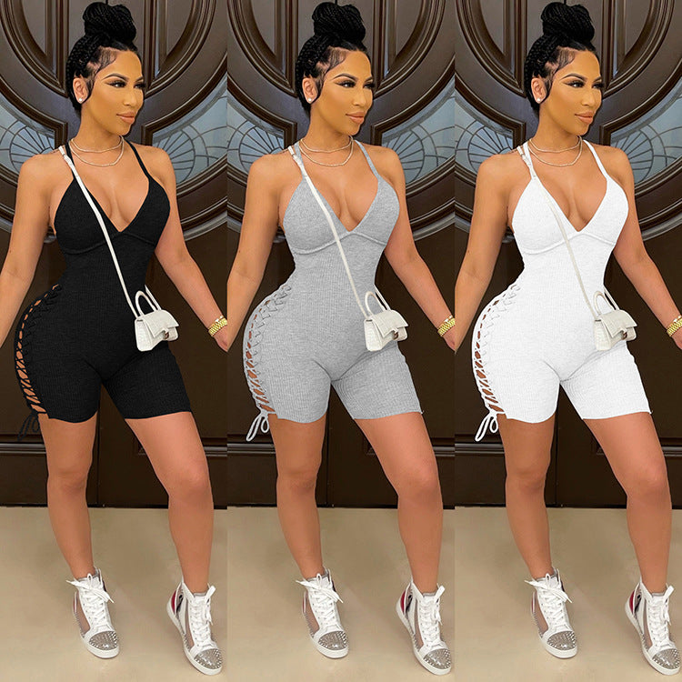 Fashion casual ribbed suspender solid color jumpsuit AY2797
