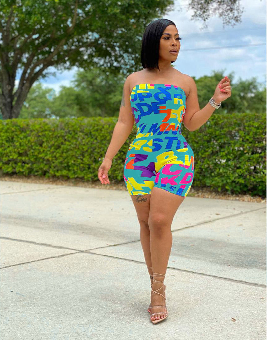 • Load image into Gallery viewer, Hot stretch tube top letter print jumpsuit AY1121