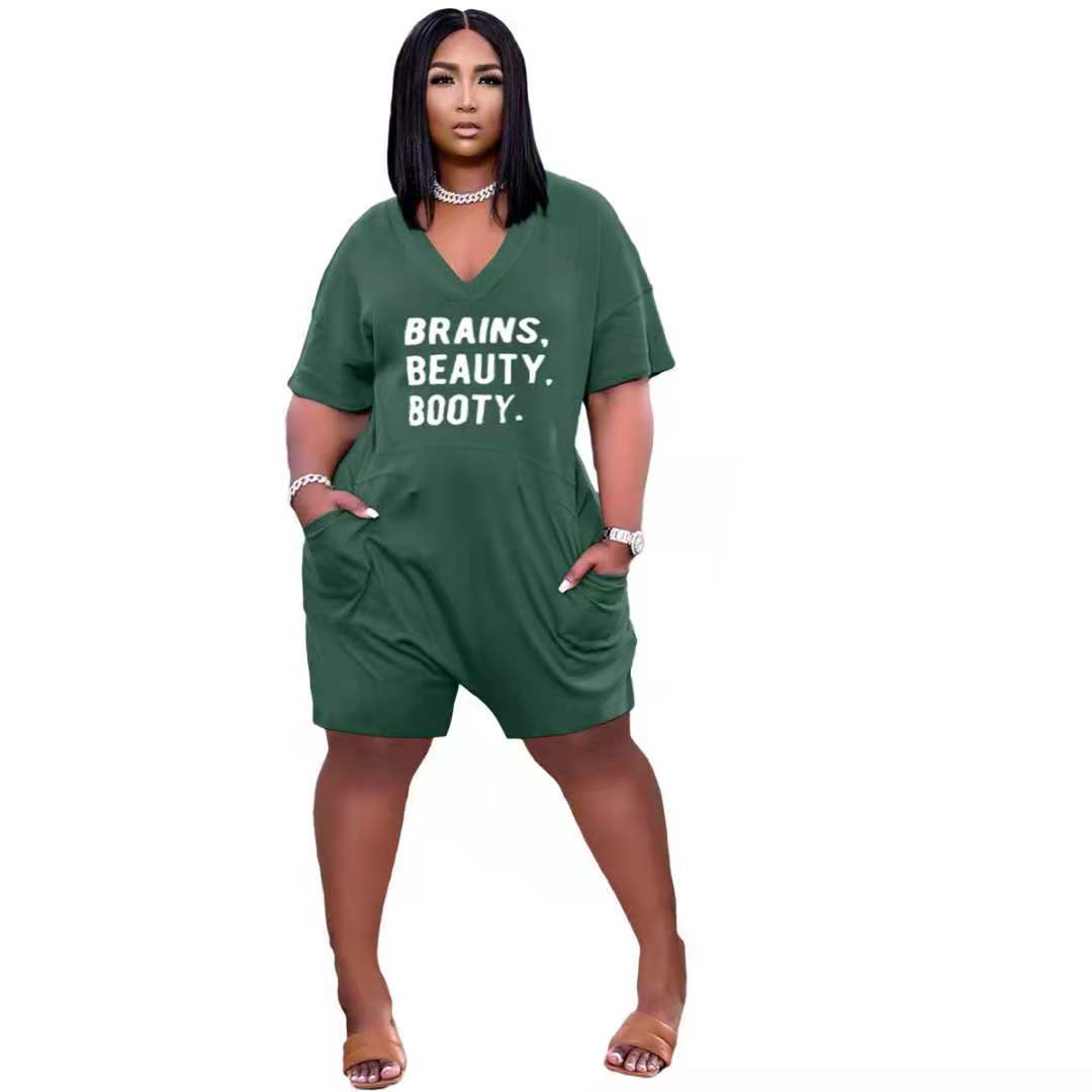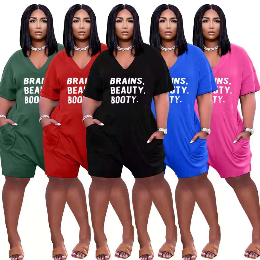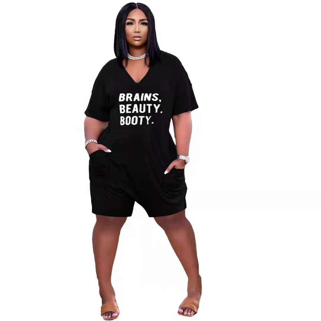 • Load image into Gallery viewer, New letter printing loose V-neck jumpsuit AY1345