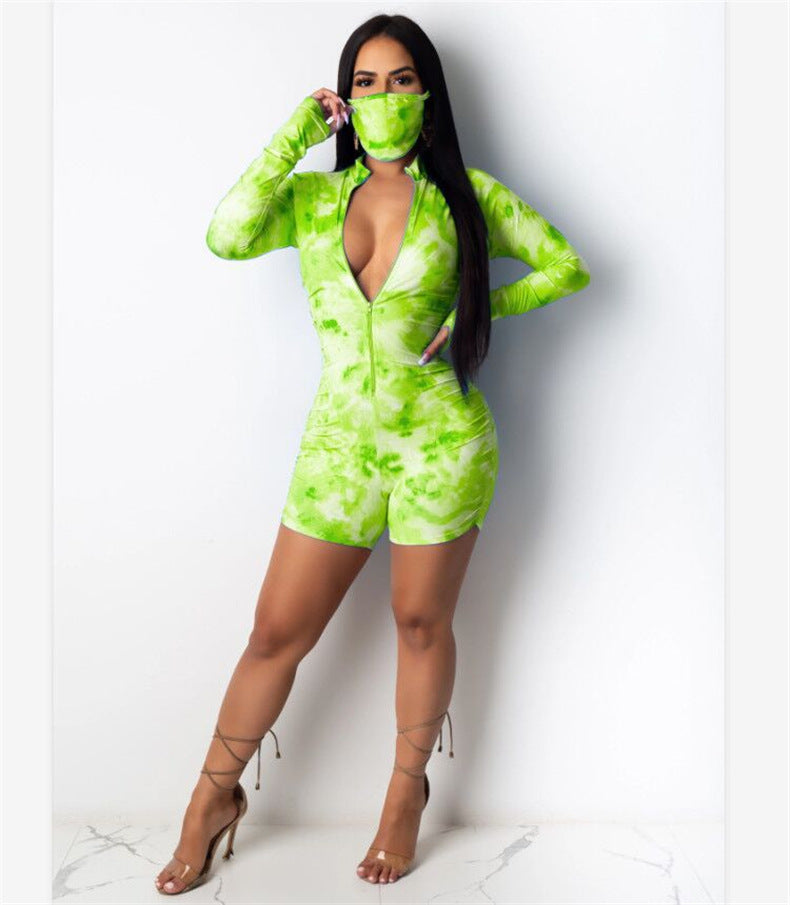 New tie-dye deep V jumpsuit(with mask) YC2111