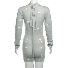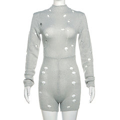 Sexy hollow out knit jumpsuit shorts AY3291