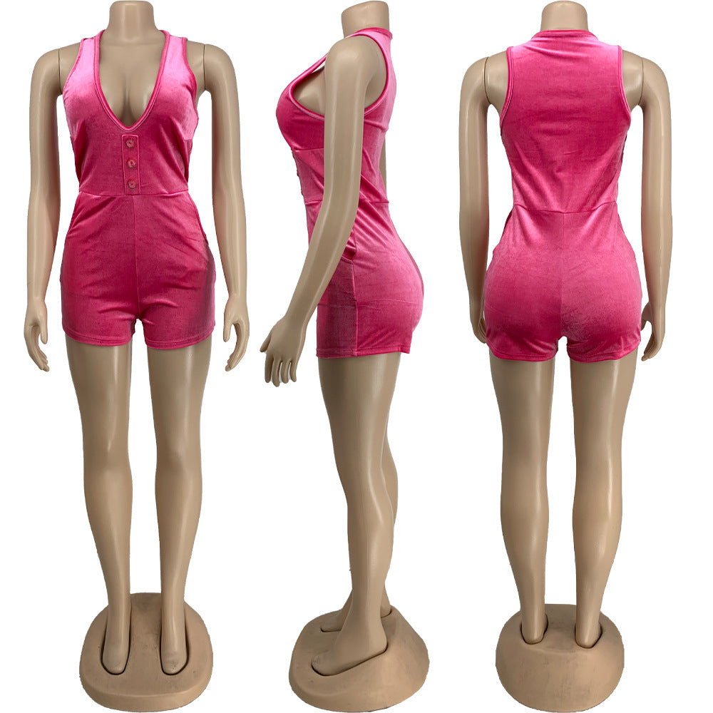 Sexy Velvet Button Jumpsuit(AY2107)
