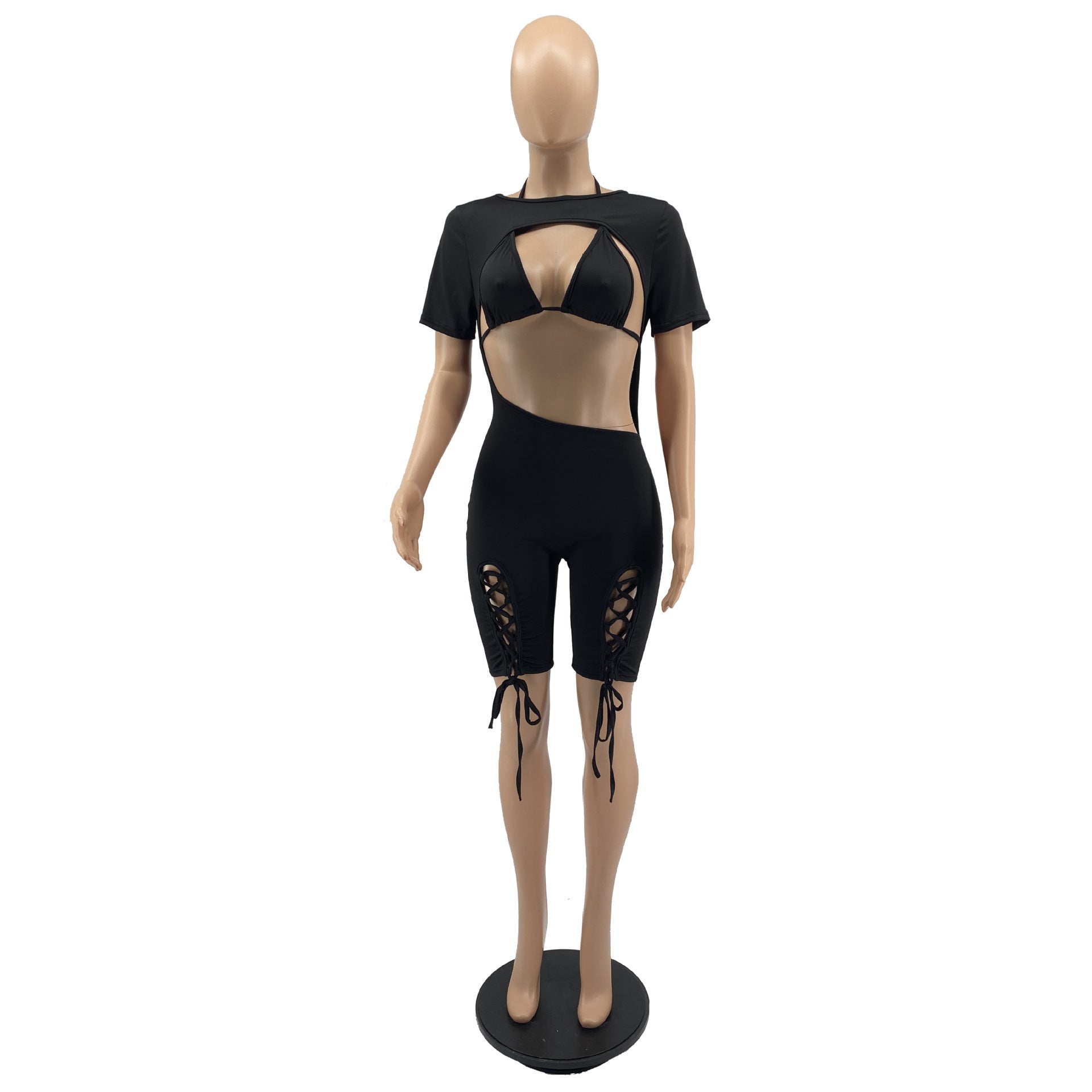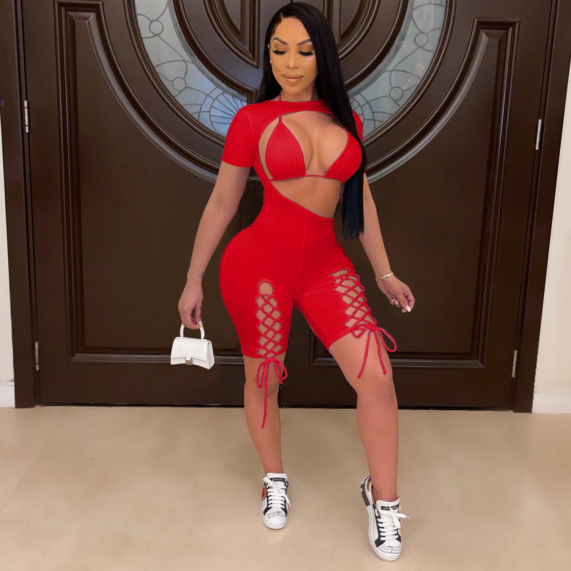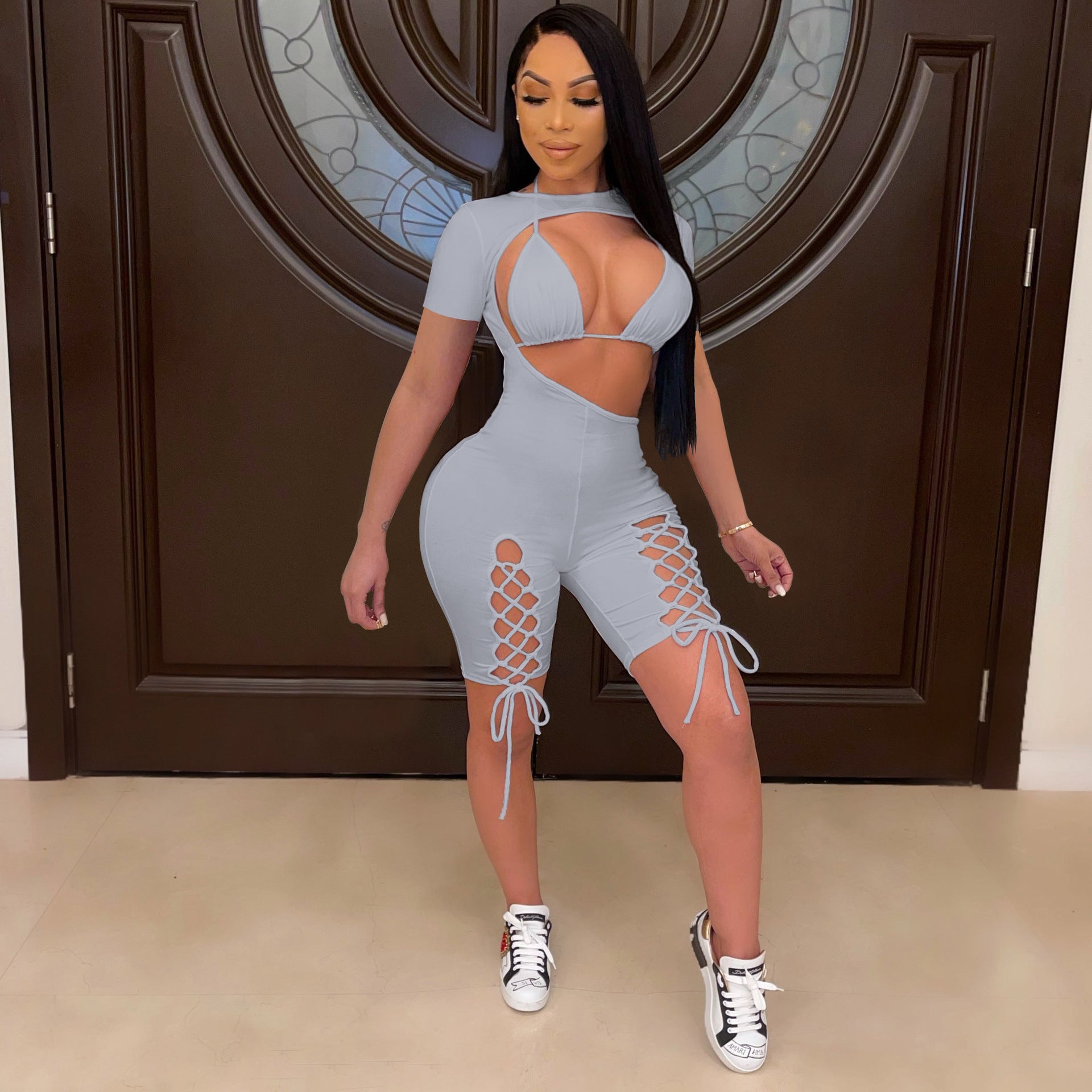 Short Sleeve Lace Up Jumpsuit Set AY2041