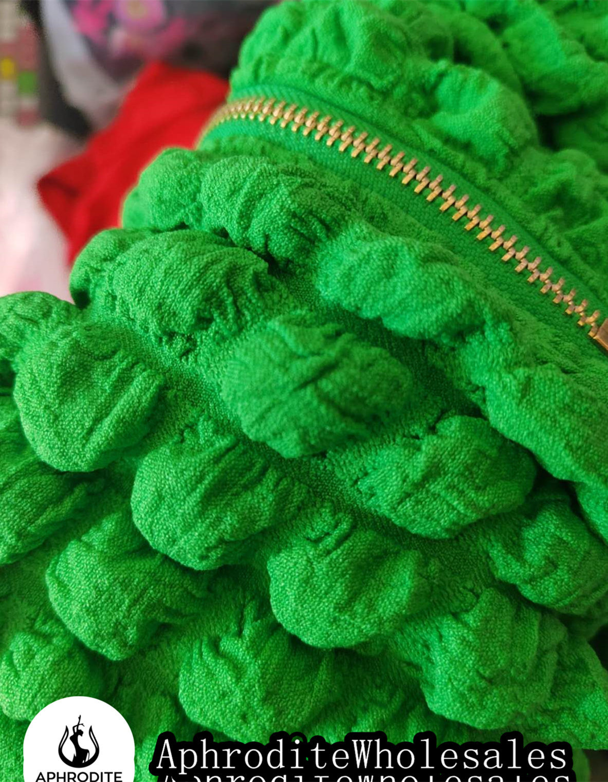 Solid color zippered collar foam cloth jumpsuit AY2652