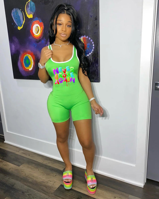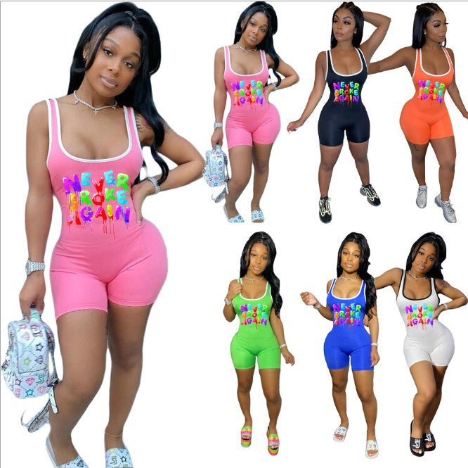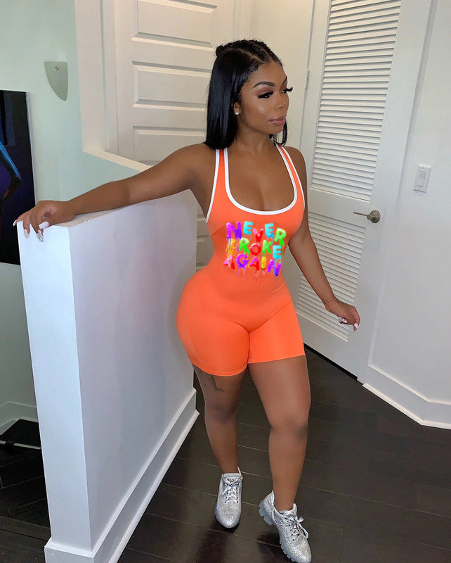 • Load image into Gallery viewer, Summer letter print racer jumpsuit AY1013