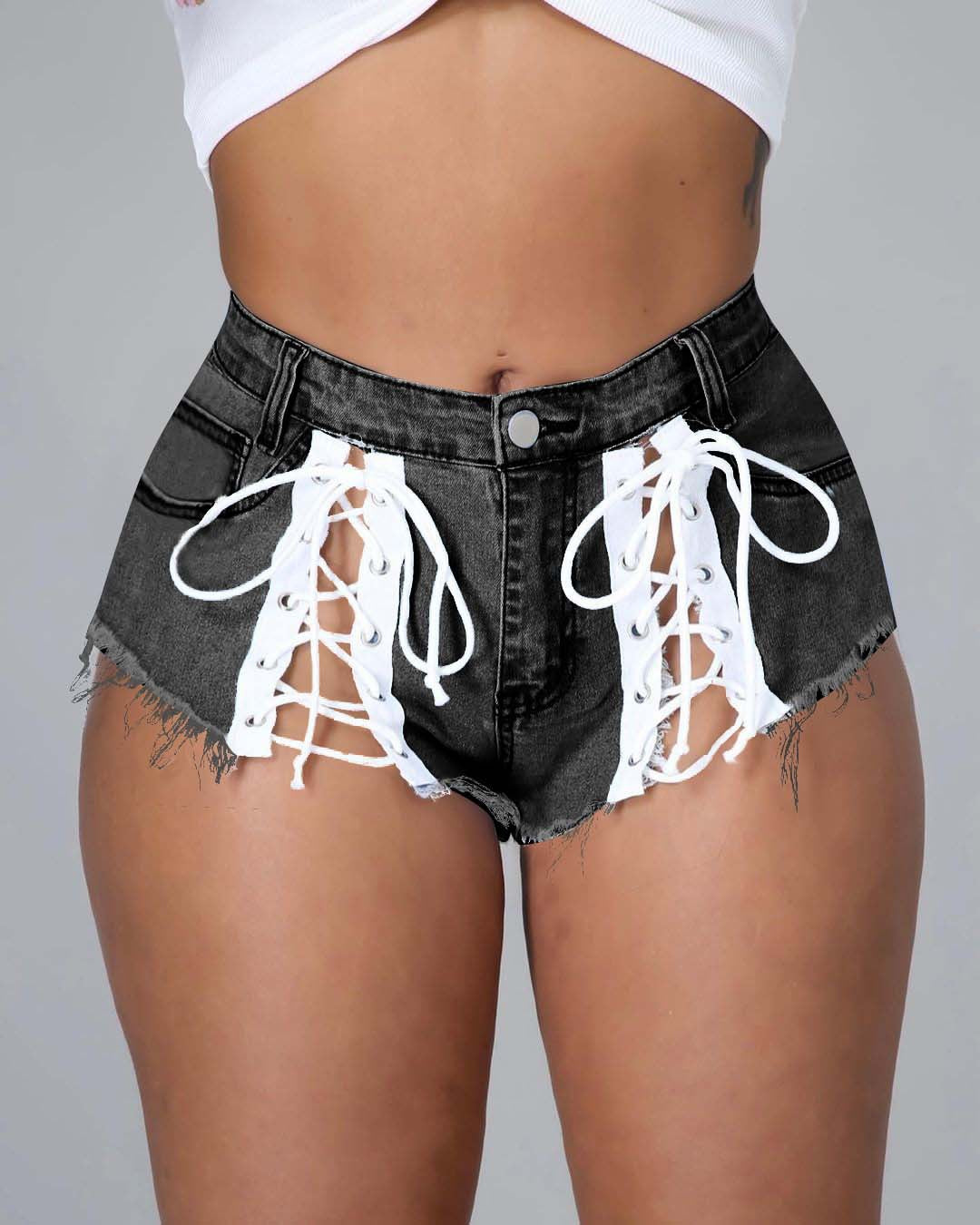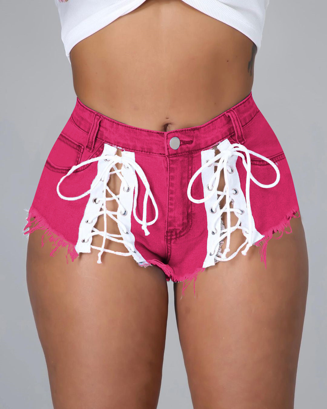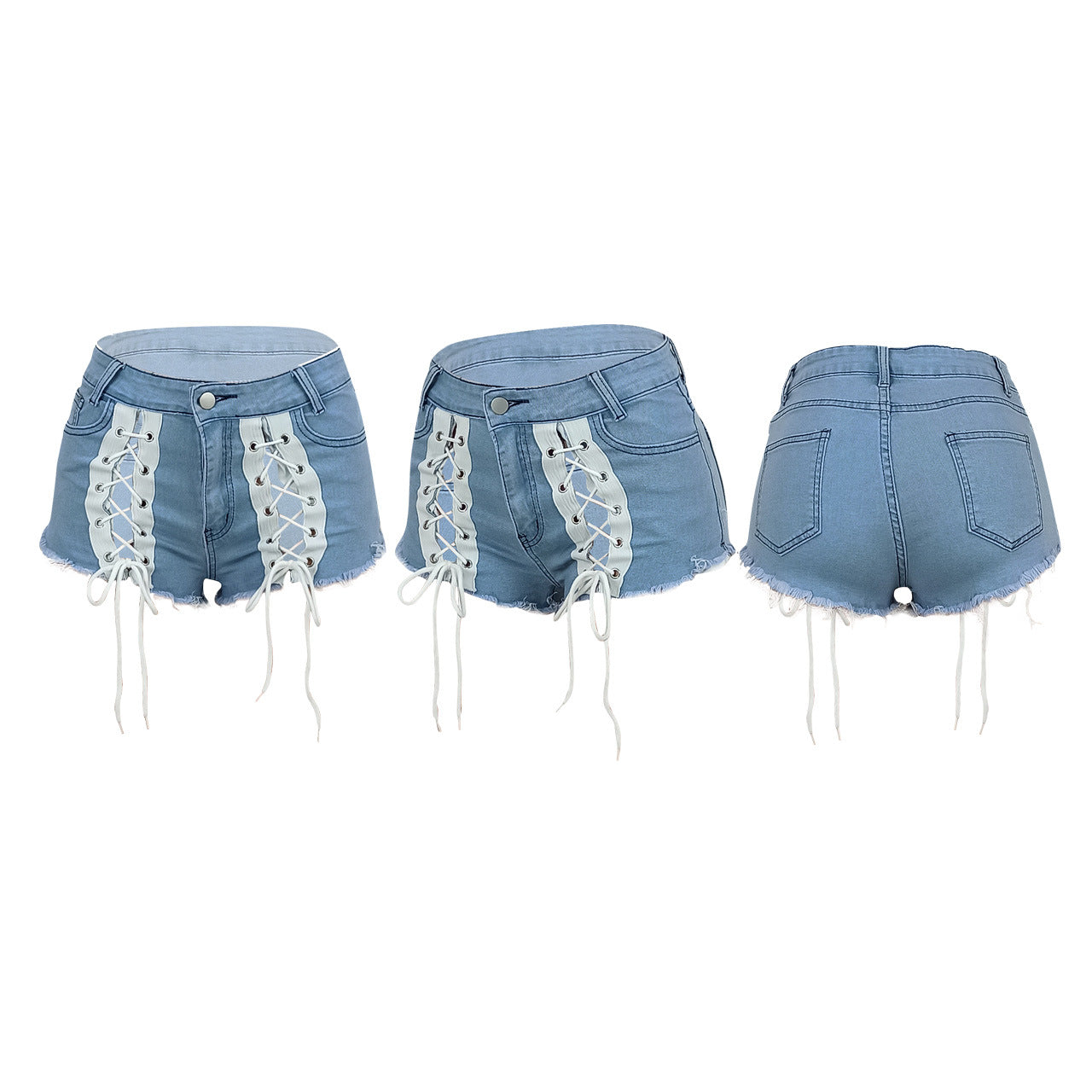 • Load image into Gallery viewer, Lace up fringed denim shorts(AY2263)