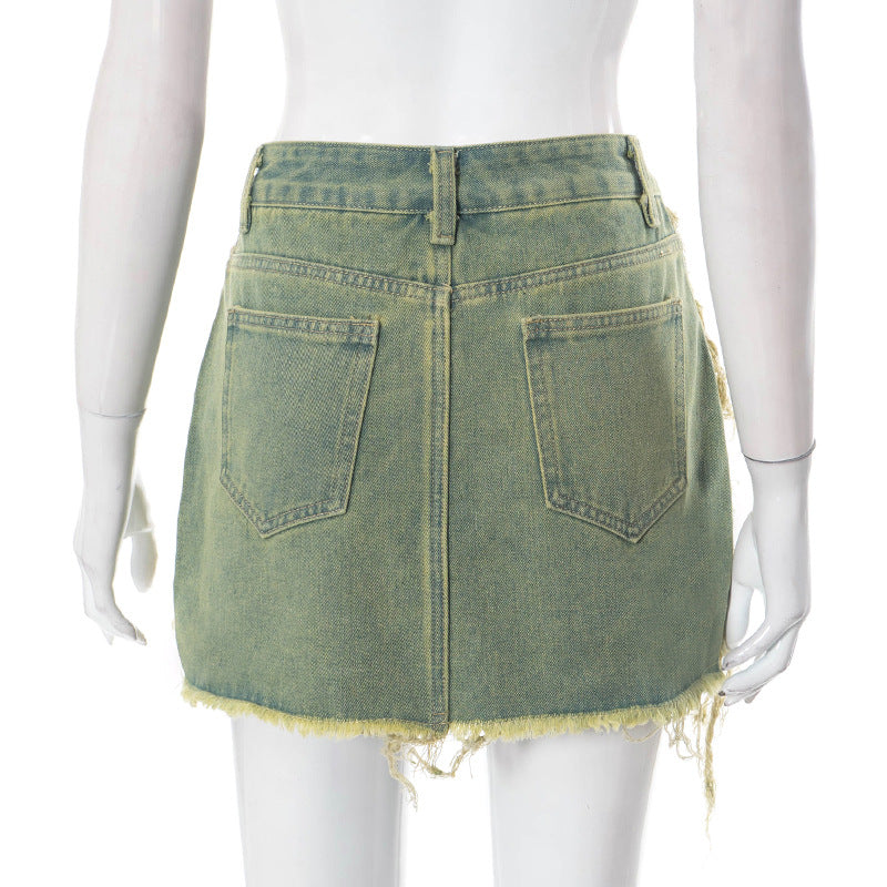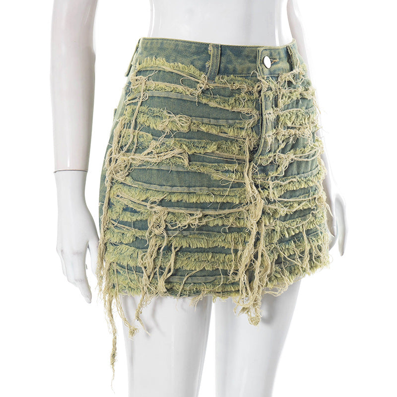 • Load image into Gallery viewer, Bright tassel tight and bulletless denim short skirt half length skirt AY3060