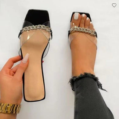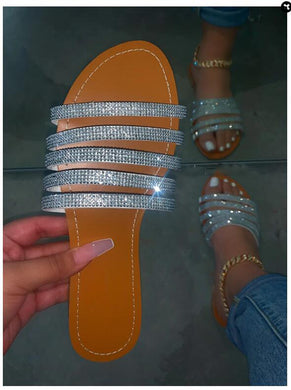 Square head rhinestone butterfly colorful slippers (only slippers)