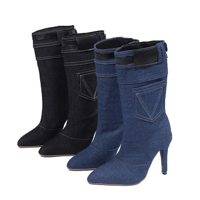 Denim pointed high heeled boots( HPSD290