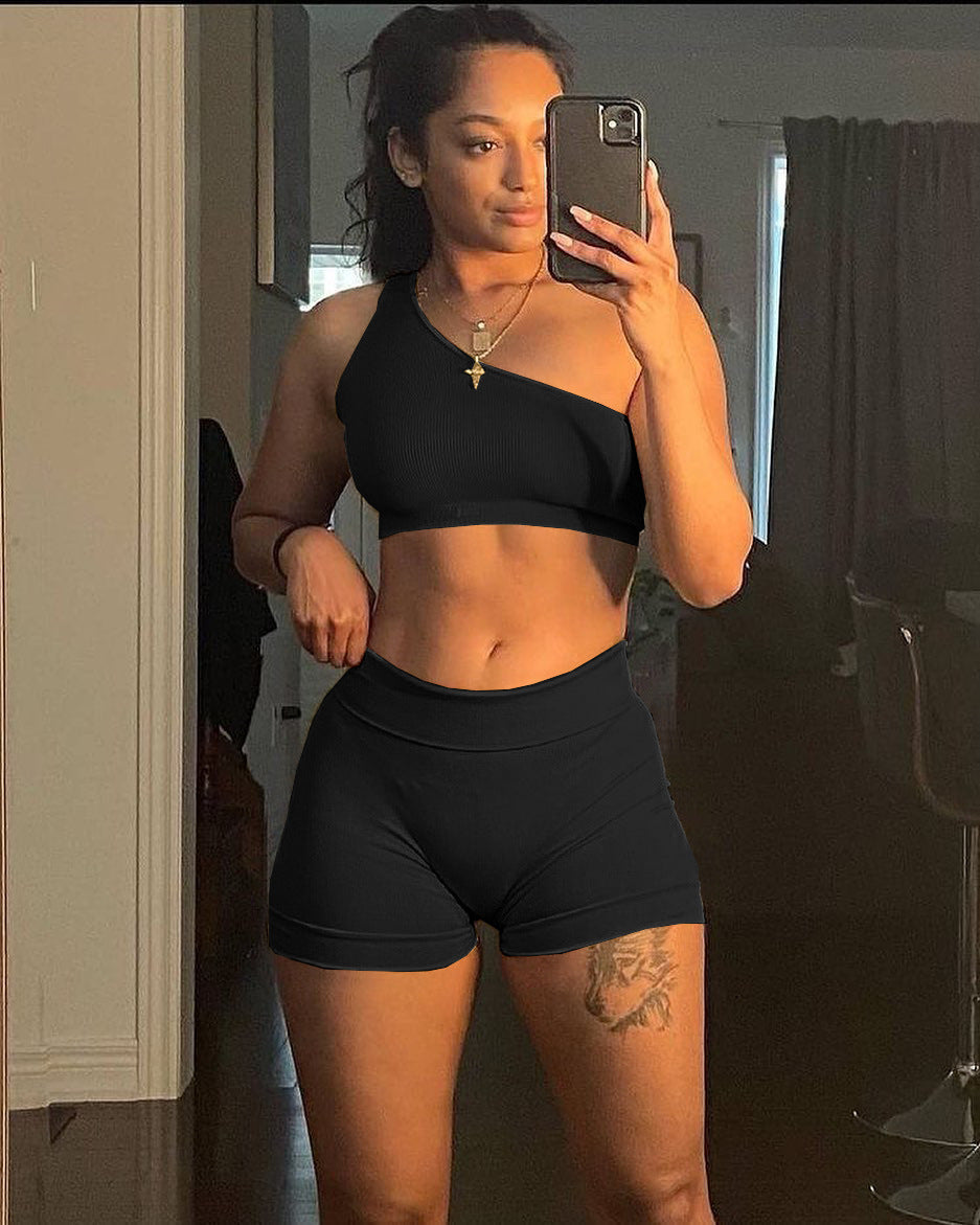 New one-shoulder small pit strip two-piece set AY1037