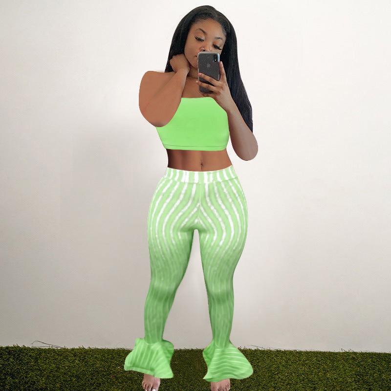 • Load image into Gallery viewer, Striped tube top ruffled pants suit AY1110