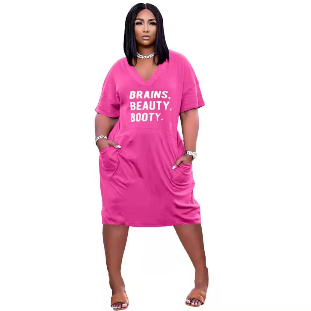 • Load image into Gallery viewer, New letter printing loose V-neck dress AY1344