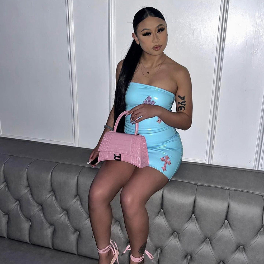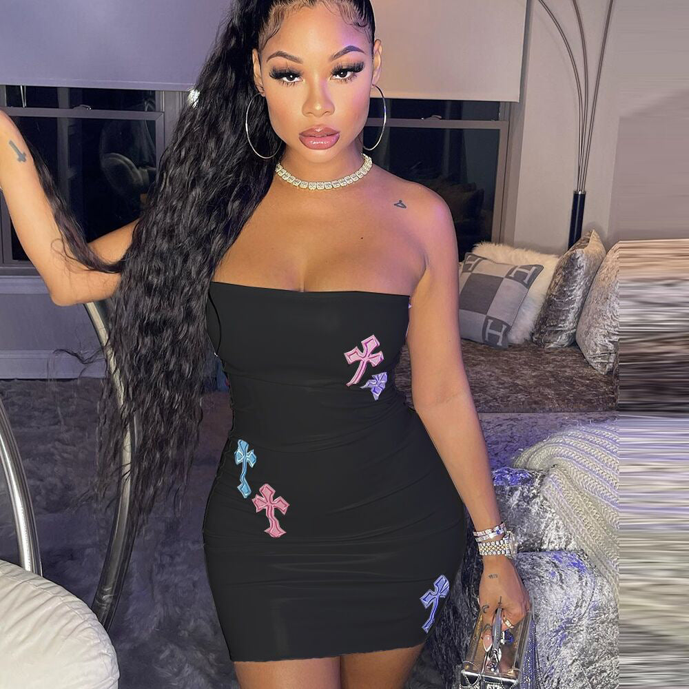 • Load image into Gallery viewer, Sexy cross embroidered breast wrap dress AY1996