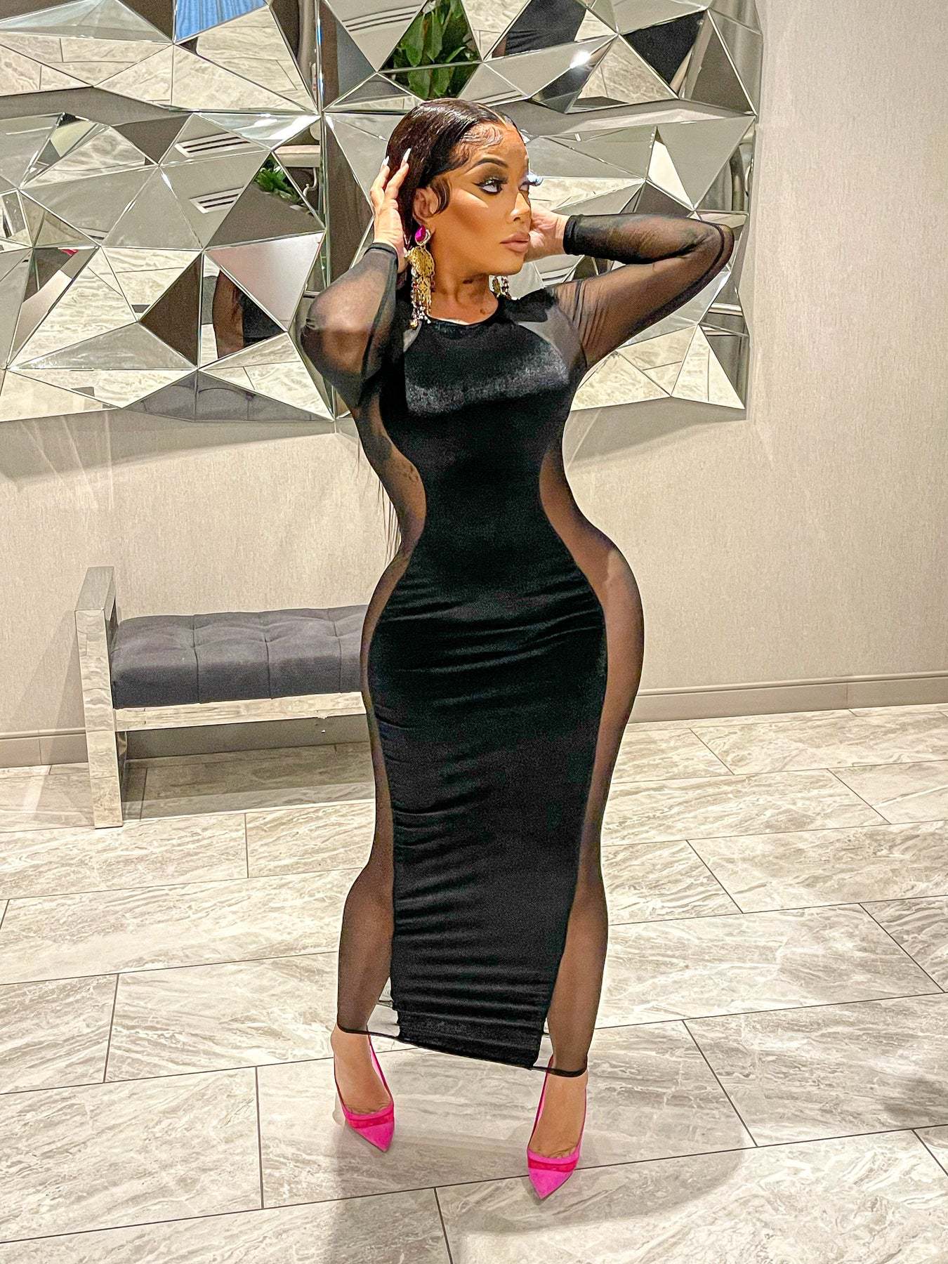 • Load image into Gallery viewer, Sexy Velvet Mesh Panel Dress(AY1883)