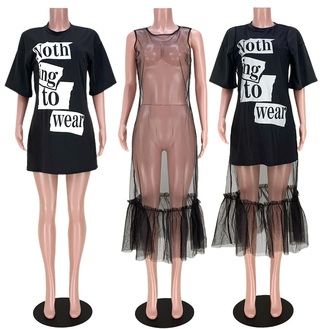 • Load image into Gallery viewer, T-shirt letter mesh vest dress AY2013