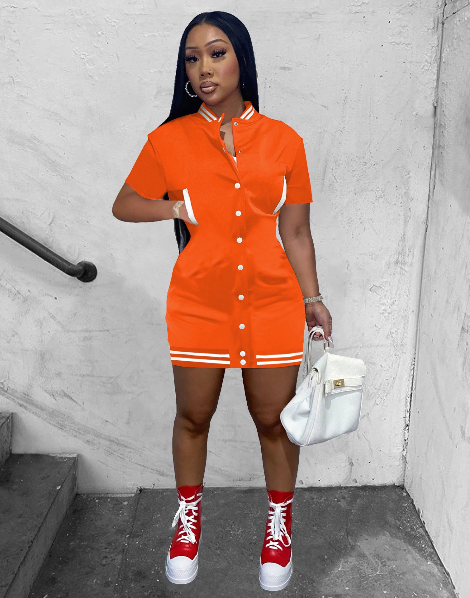 • Load image into Gallery viewer, Women's short sleeve button baseball dress AY1922