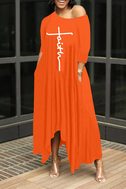 Letter Irregular Off Shoulder Dress(AY2111)