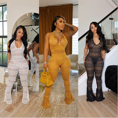 Solid color lace cut-out skinny sexy casual jumpsuit AY3556