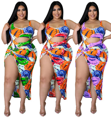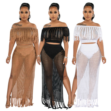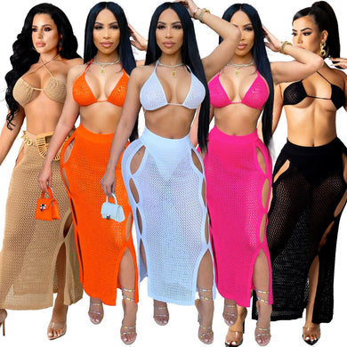 Sexy knitted cutout swimwear beach blouse two piece set(AY1954)