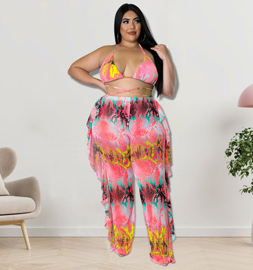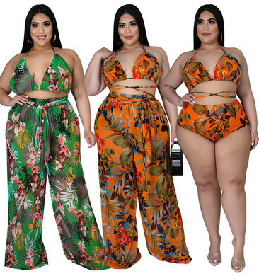 Printed Swimwear Hot Pants Shorts Three Piece Set(AY1852)
