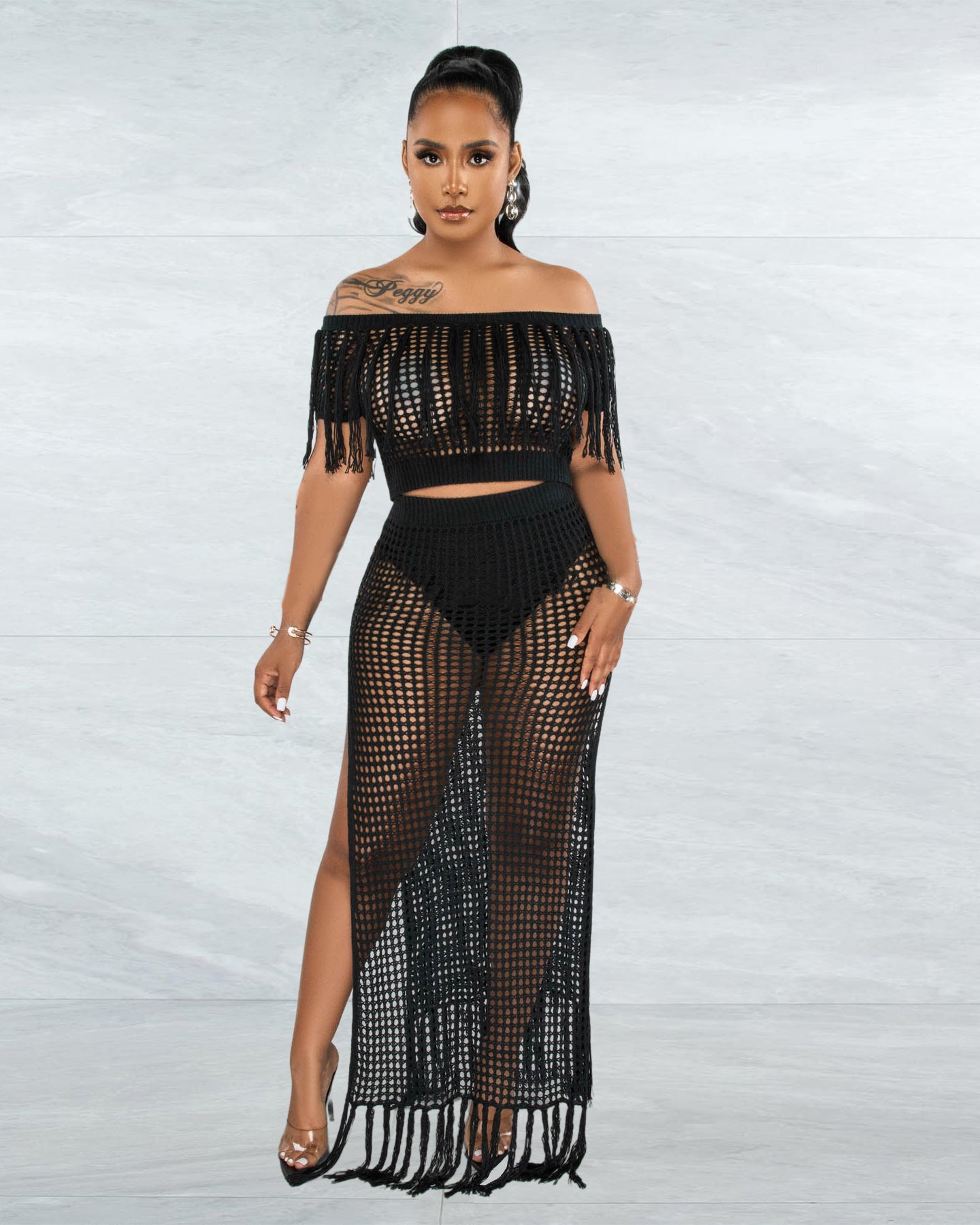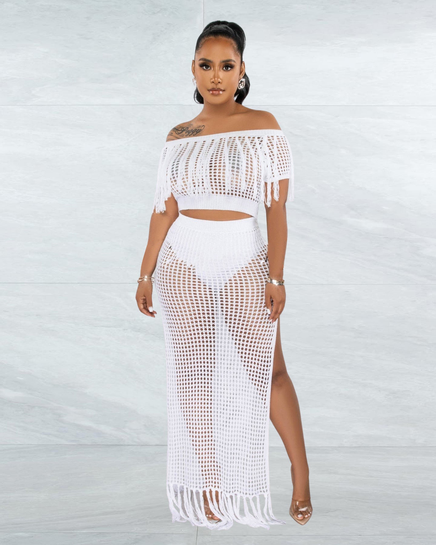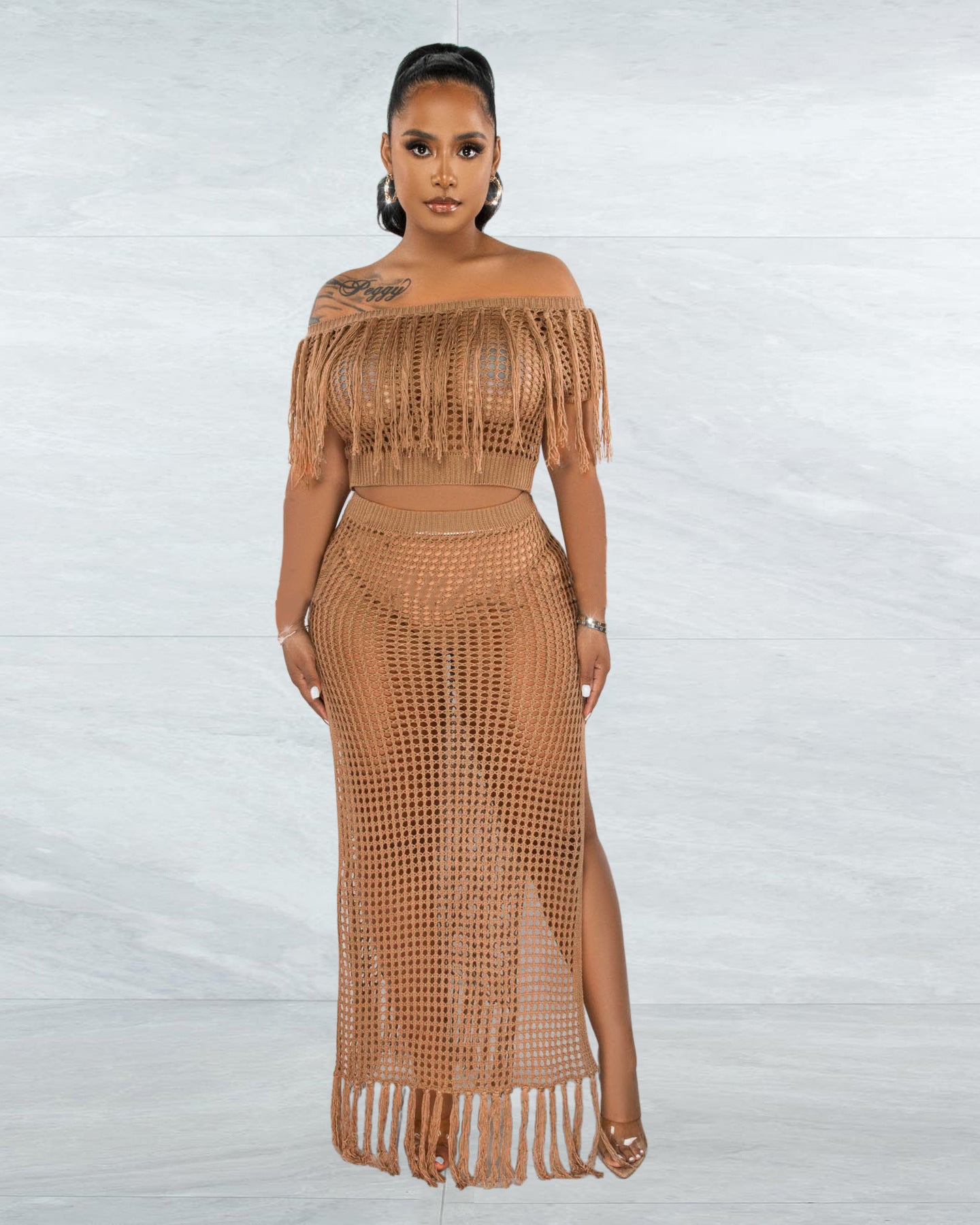• Load image into Gallery viewer, Shoulder woolen half skirt with slit beach skirt sexy set AY2903