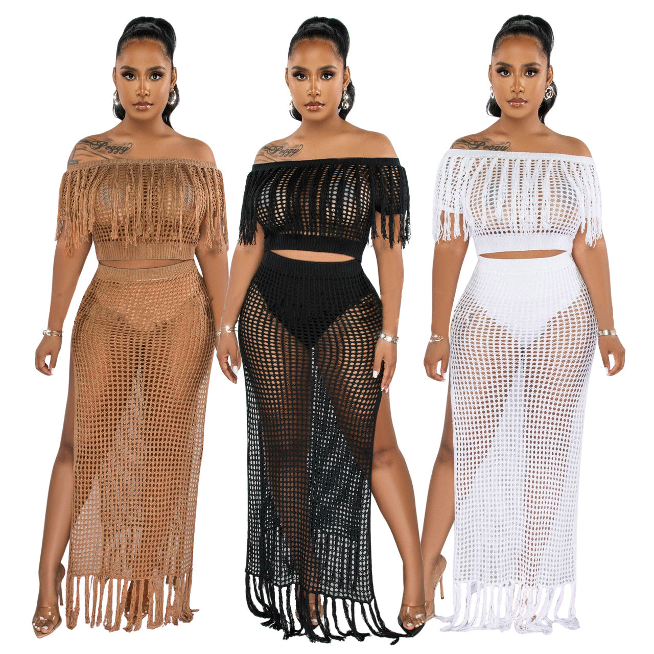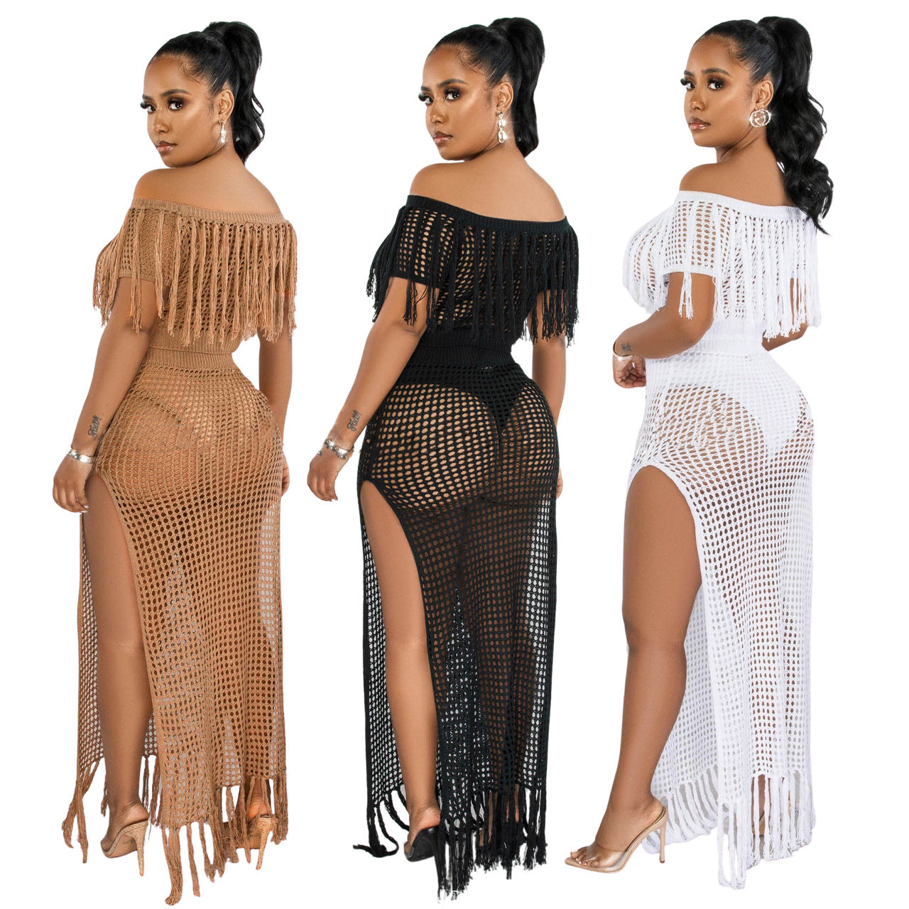 Shoulder woolen half skirt with slit beach skirt sexy set AY2903