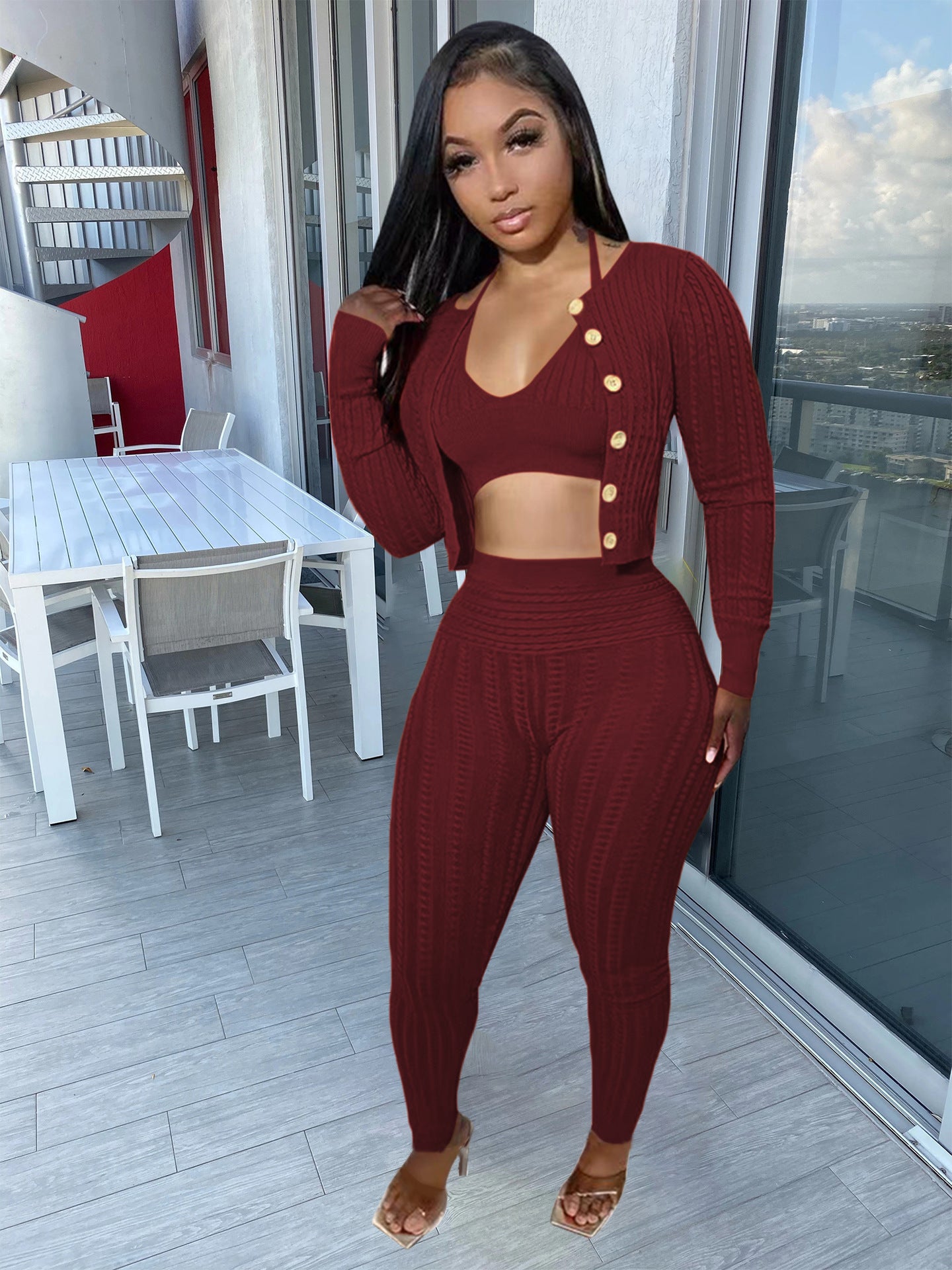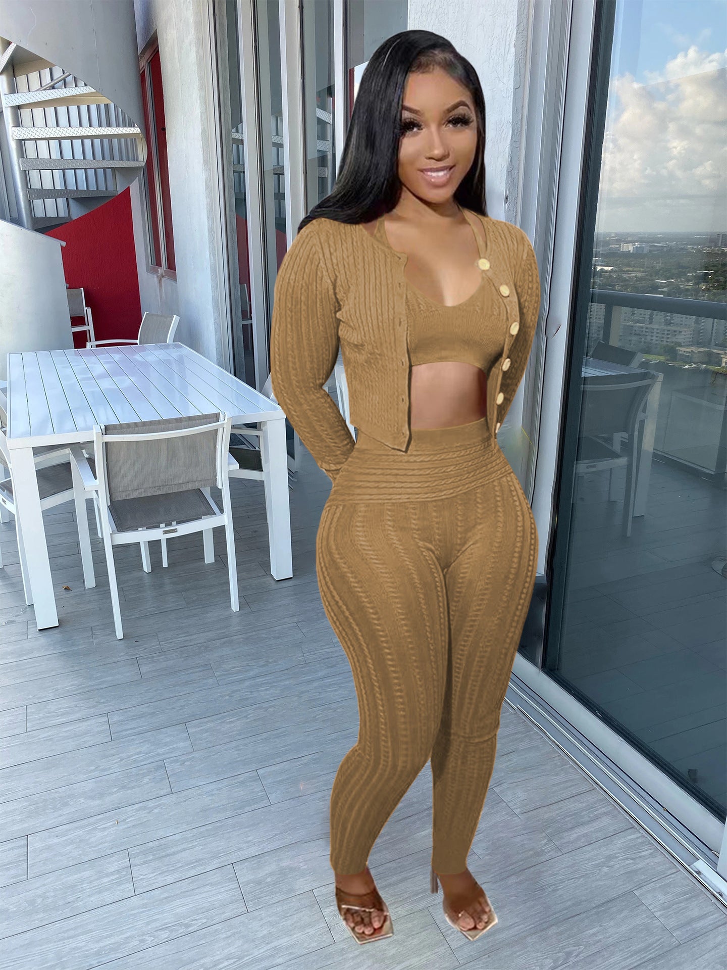 • Load image into Gallery viewer, Hand knitted sweater three piece cardigan set(AY2424)