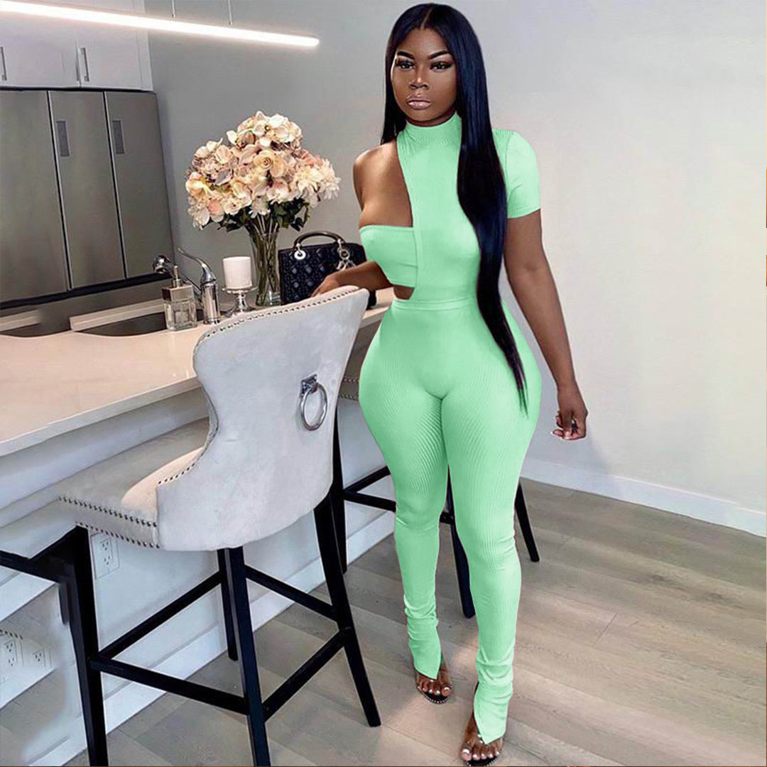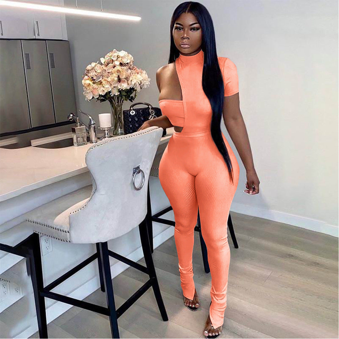 Three-piece suit of asymmetrical wrapped chest and split trousers AY1176