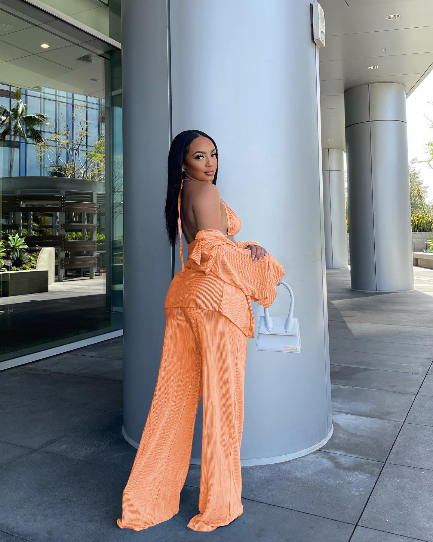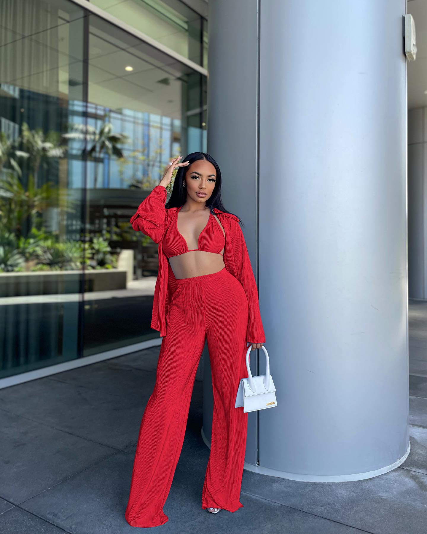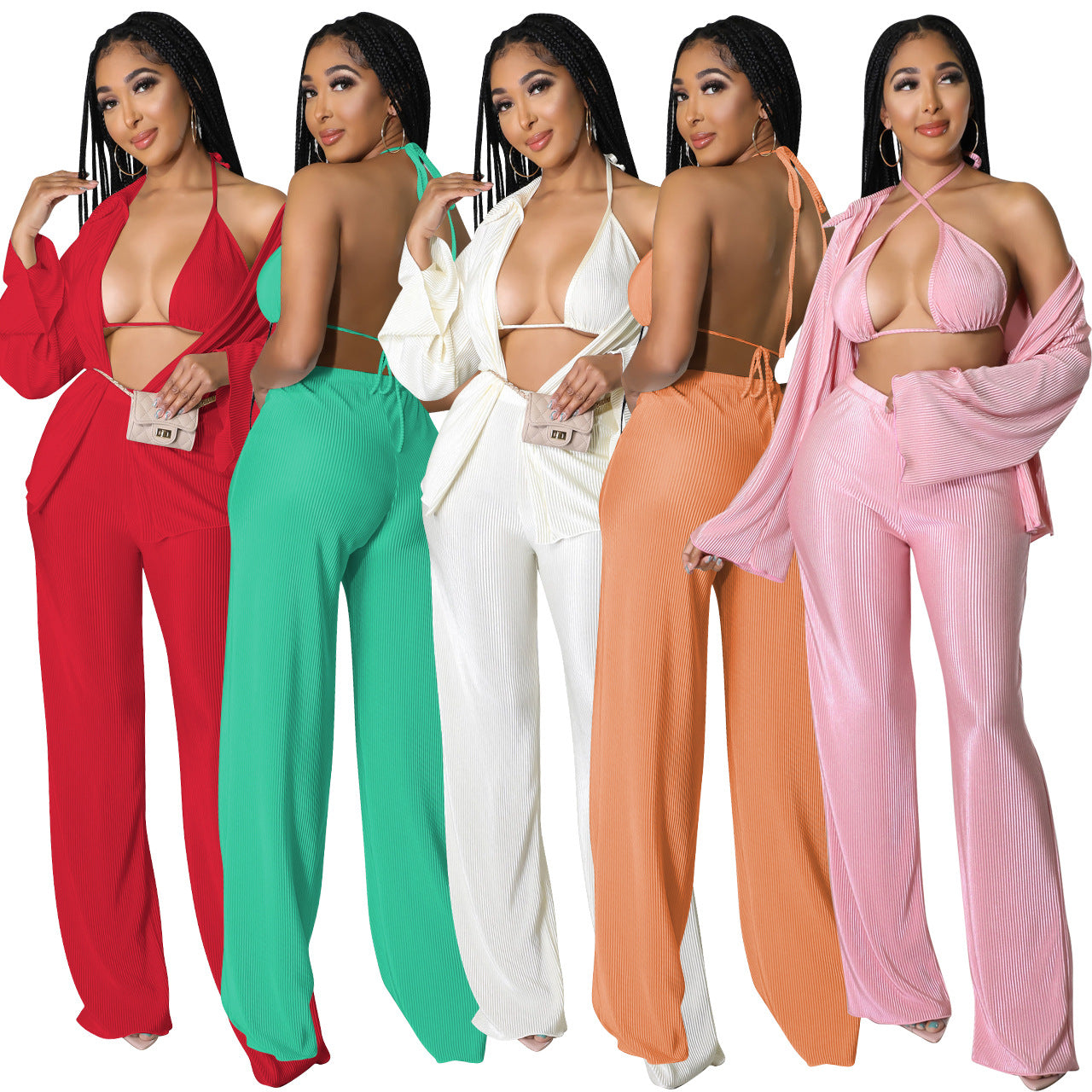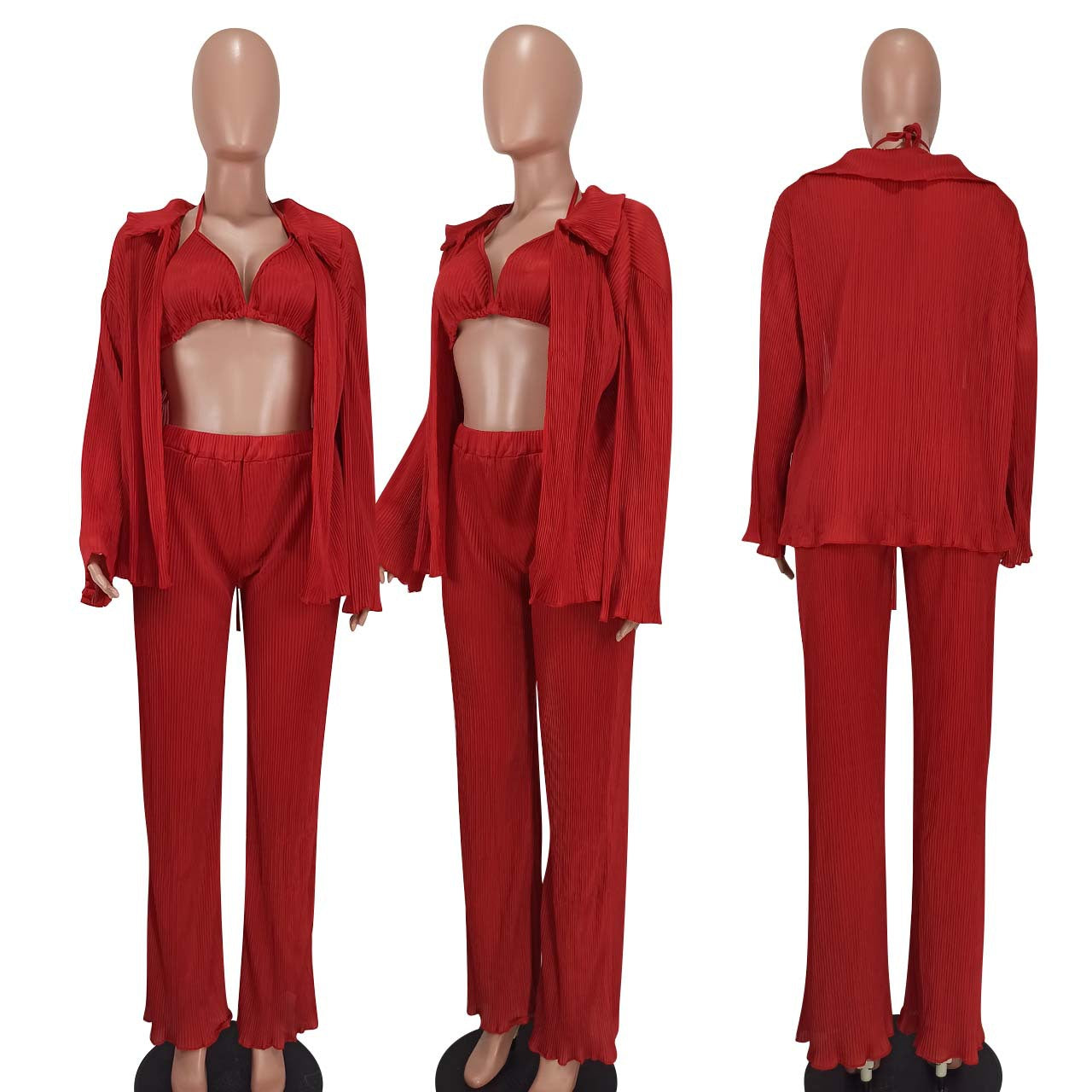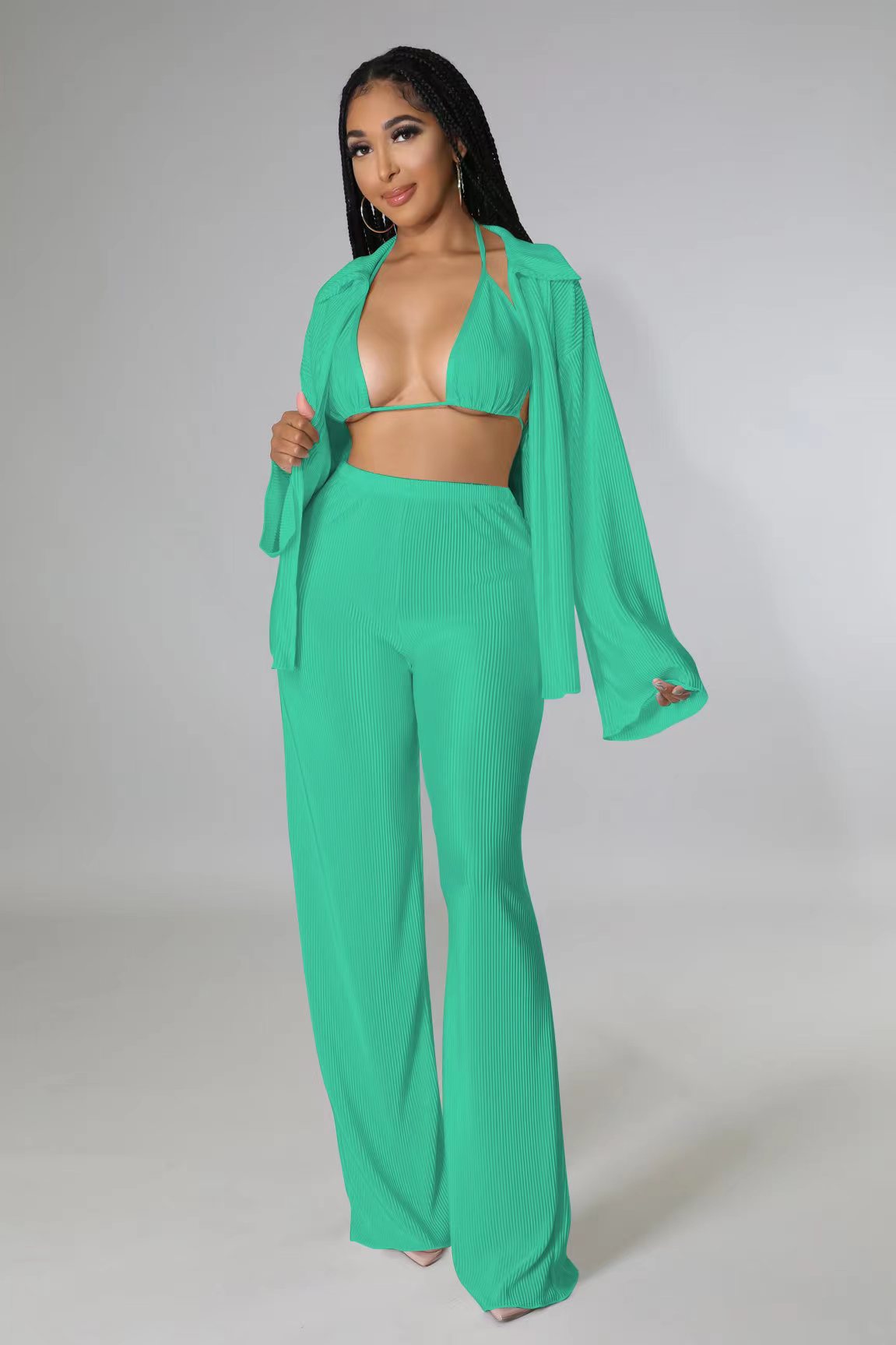 • Load image into Gallery viewer, Pleated cardigan three-piece set(AY2264)