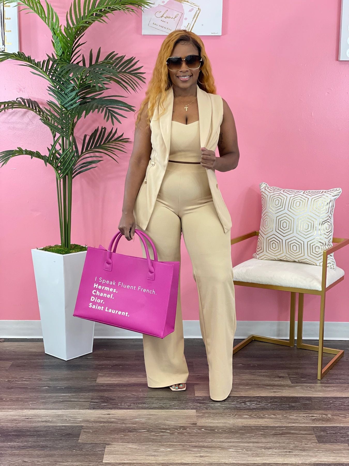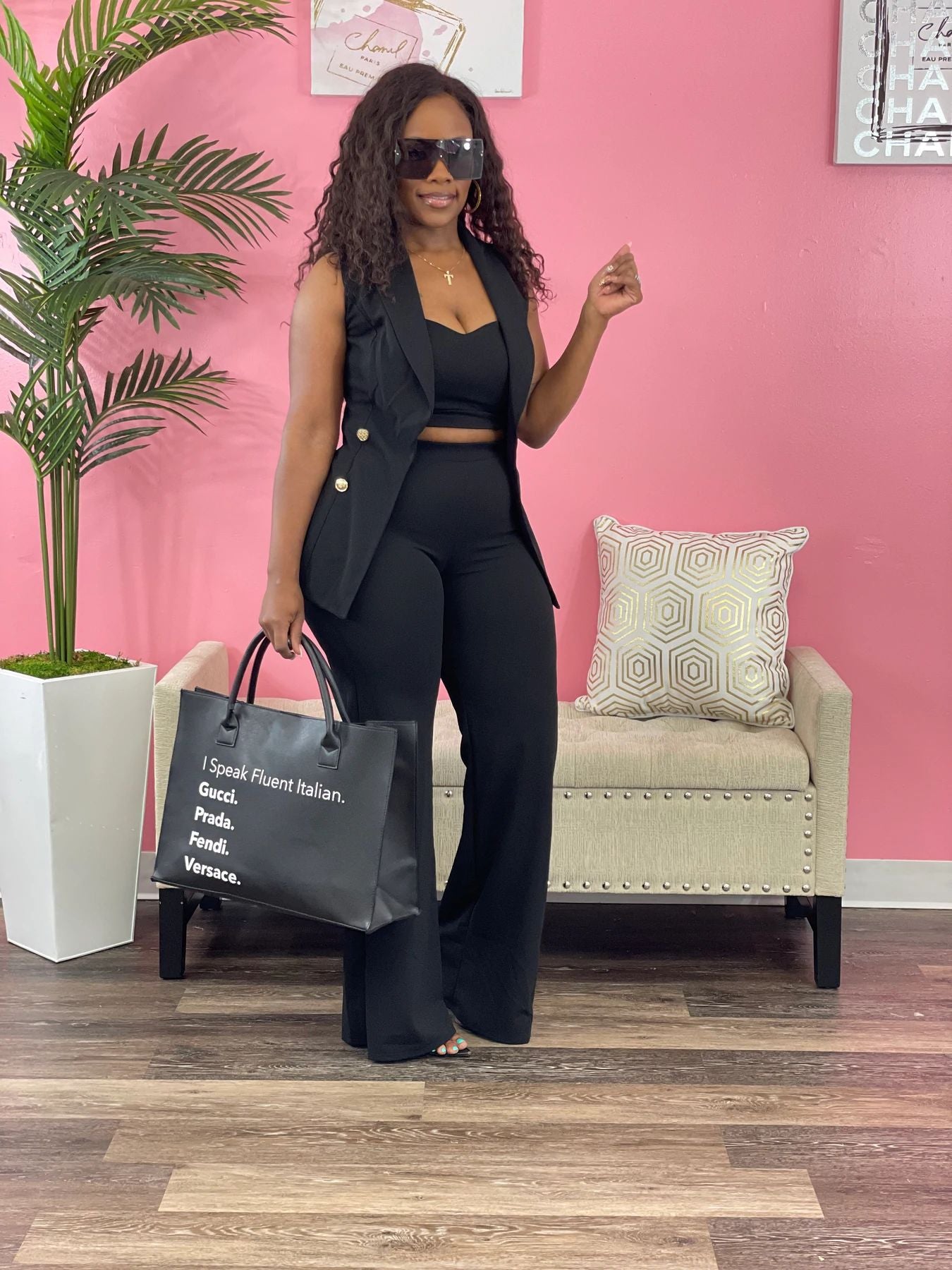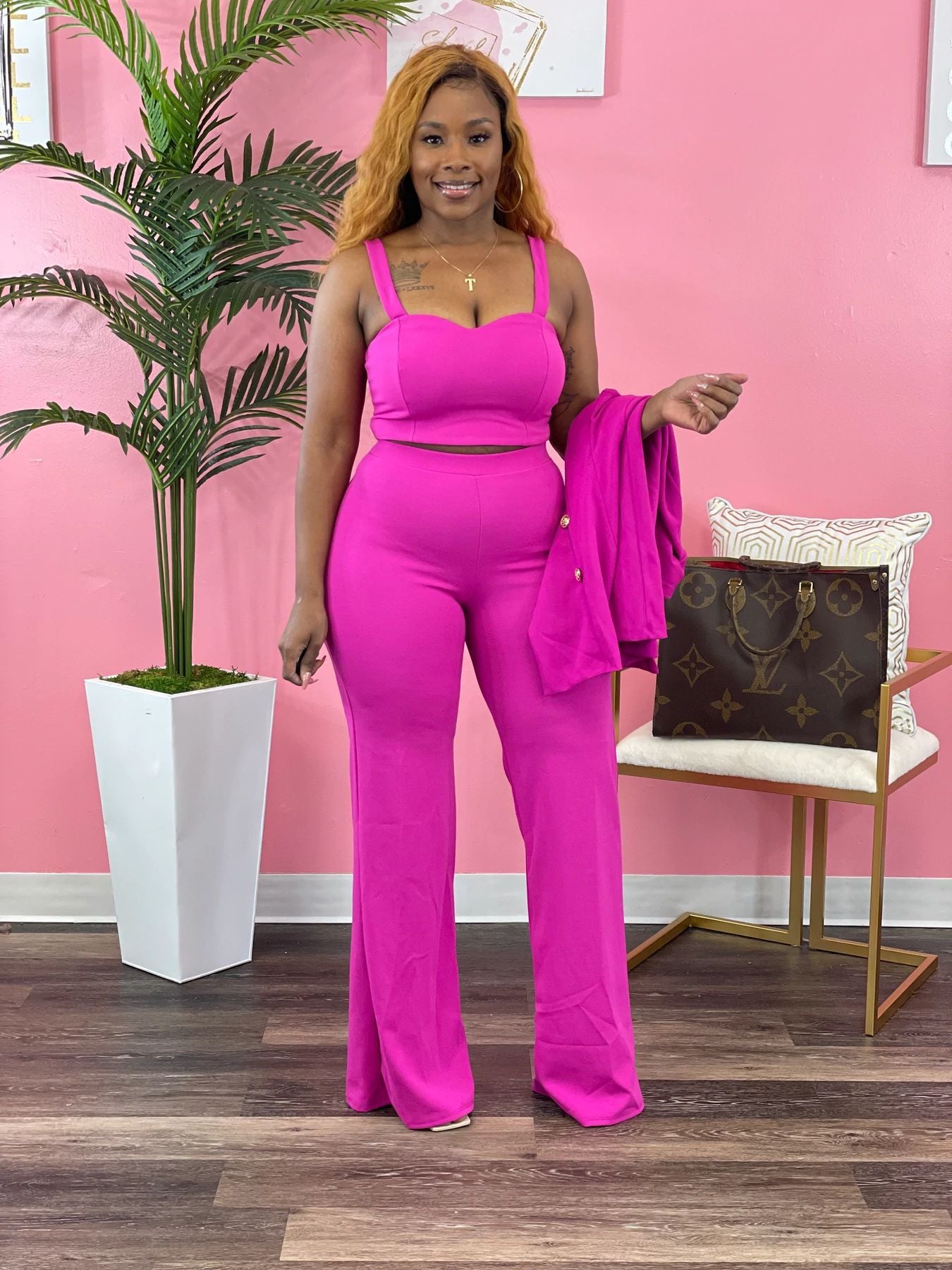 Slim Fit Wide Leg Pants Three Piece Set(AY2187)