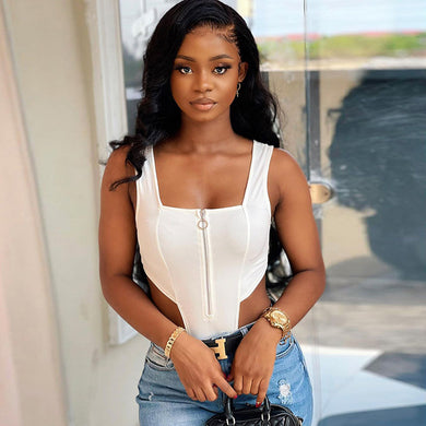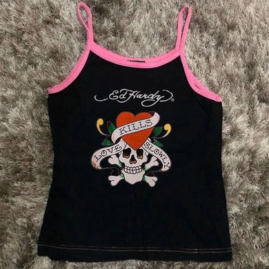 Sleeveless printed cropped U-neck crop top vest AY3513