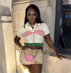 Fashion street shot sexy crop top knit short sleeves AY3375