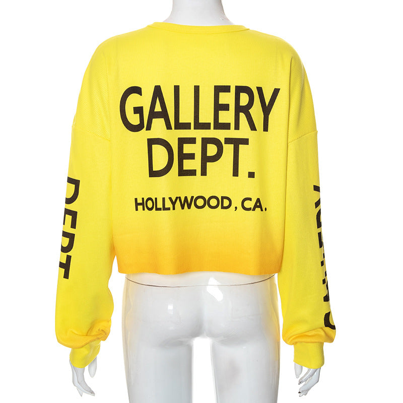 Gradient round neck printed long sleeved T-shirt top(AY2412)