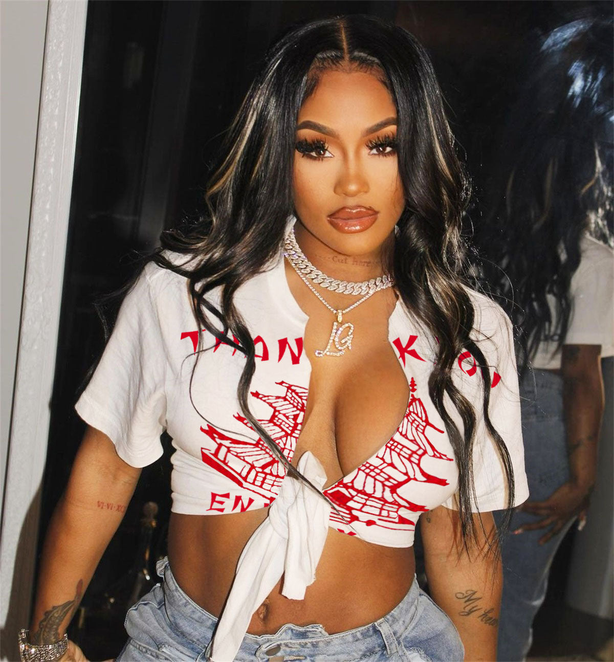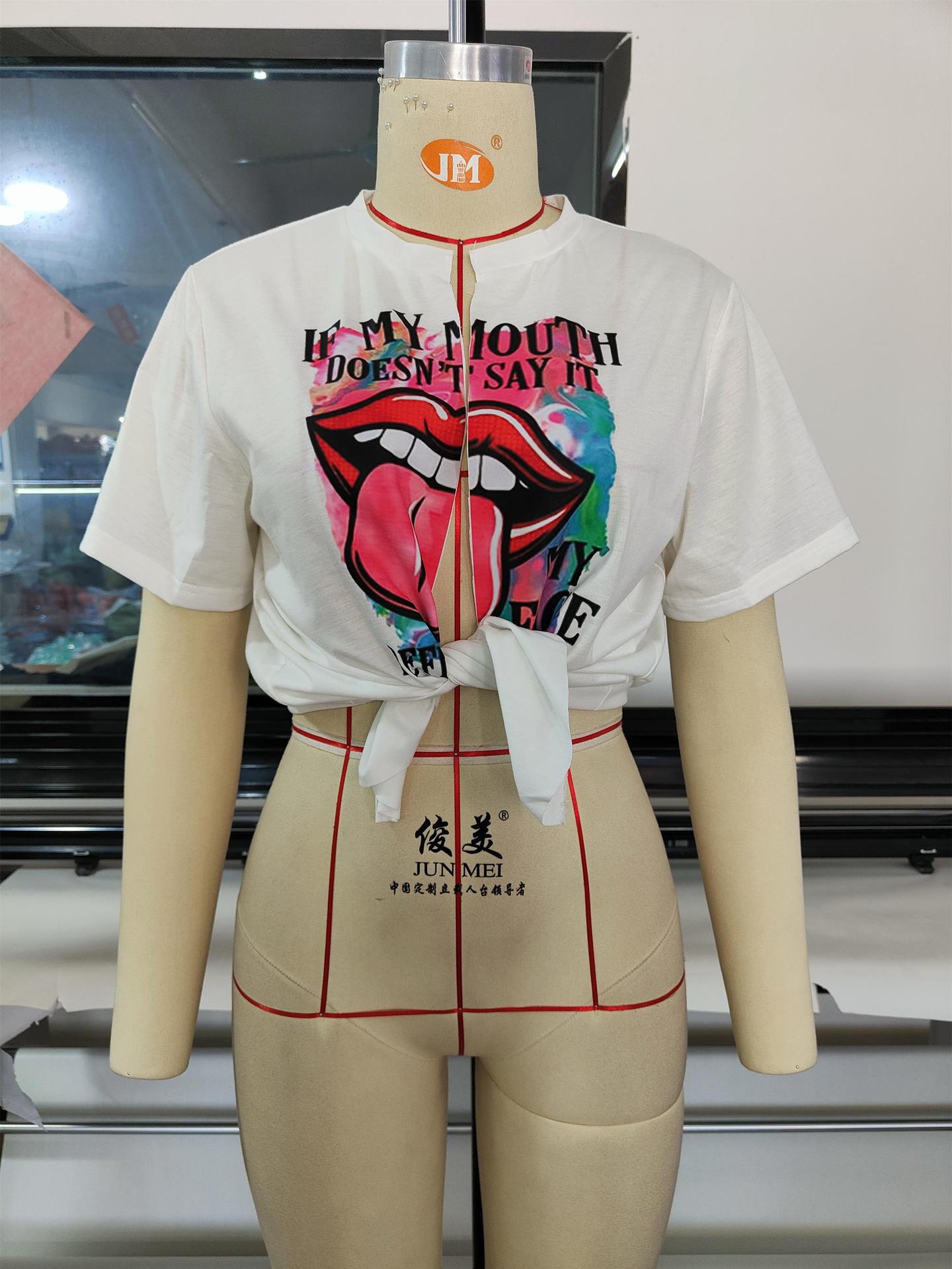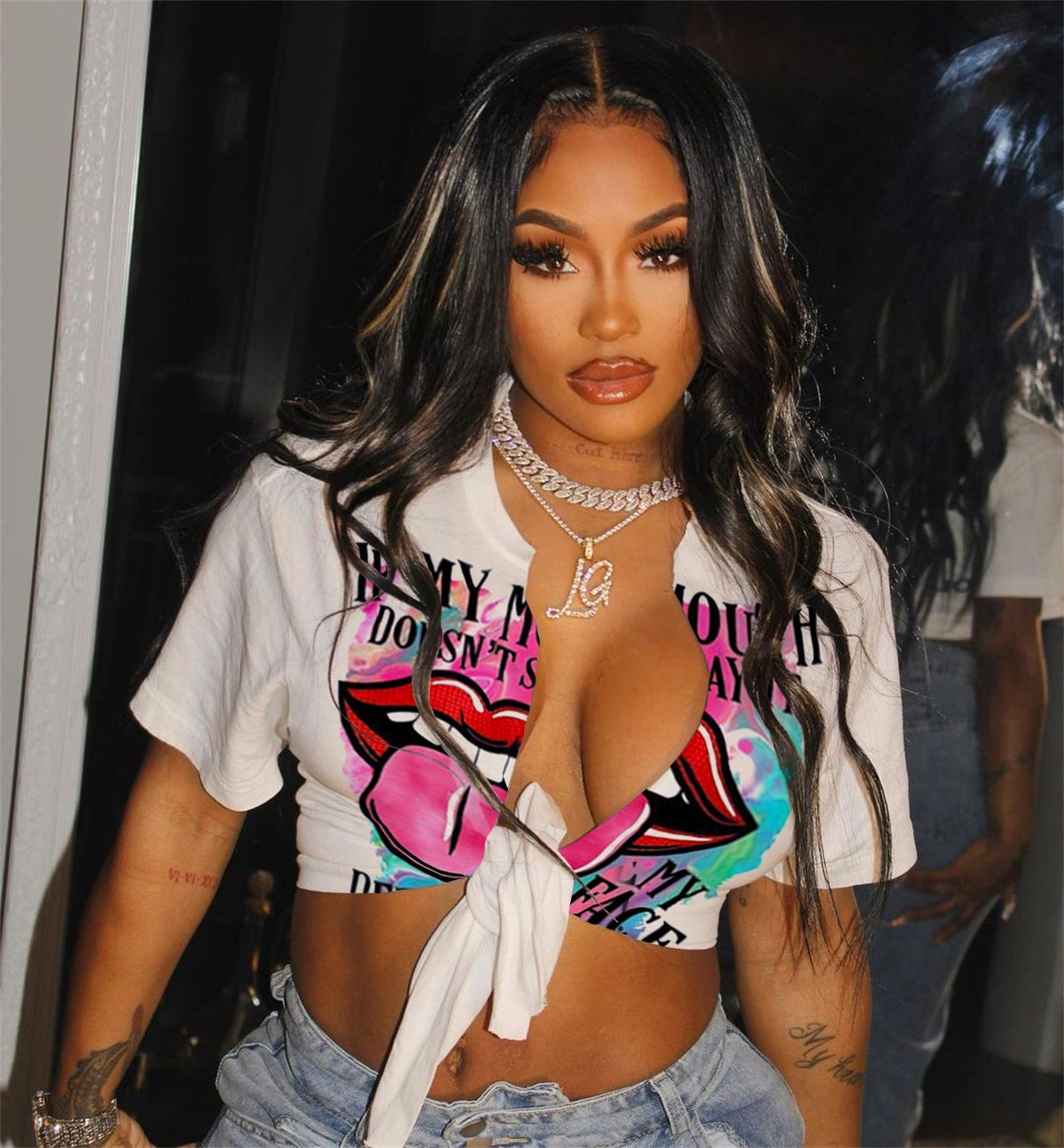 • Load image into Gallery viewer, Letter graffiti lip print cardigan T-shirt AY2000