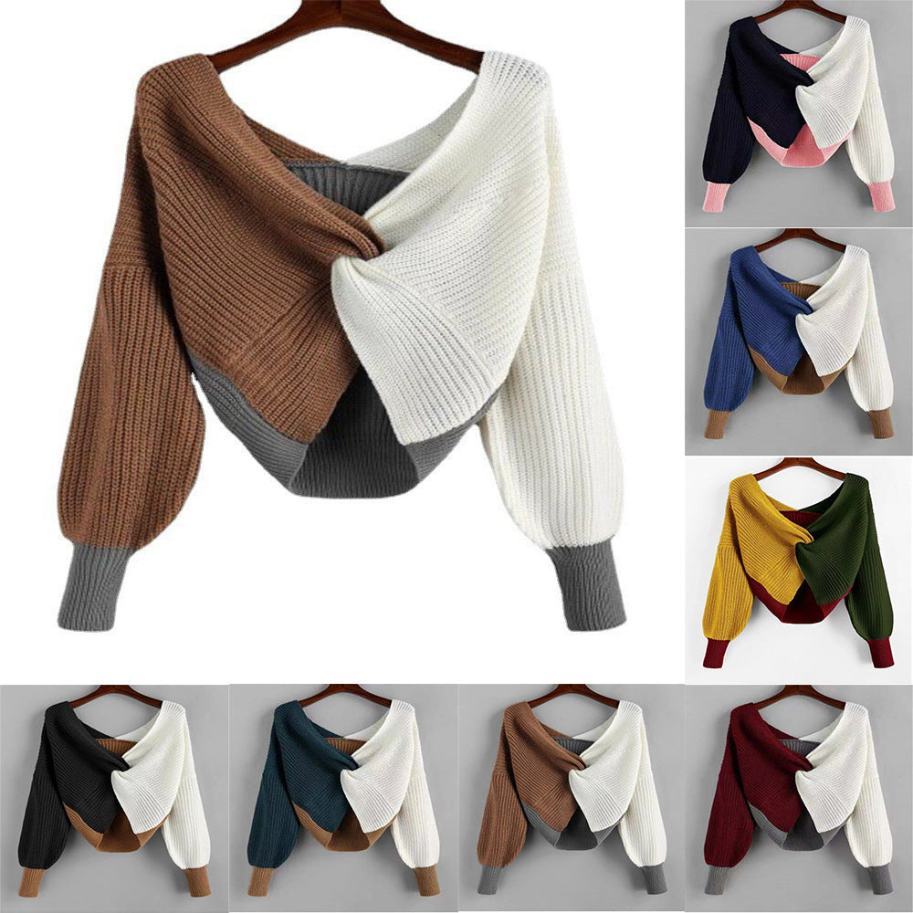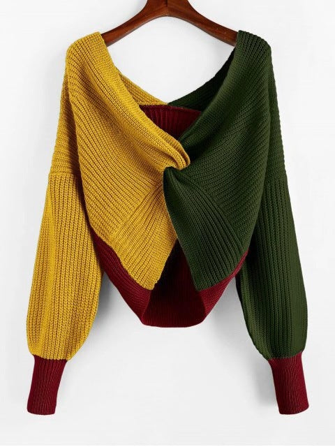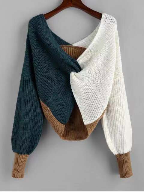 Personality fancy knitted contrast sweater(AY1440)
