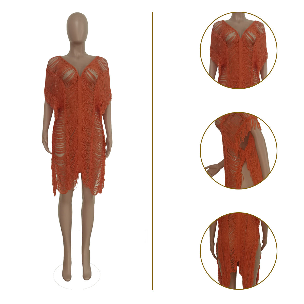 • Load image into Gallery viewer, Solid casual tassel hollowed out T-shirt AY1935