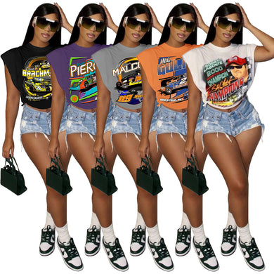 Cool printed sleeveless side cut T-Shirt Top AY2200