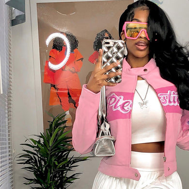 Fashionable ripped jeans chain beaded chain Straight-leg pants