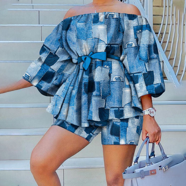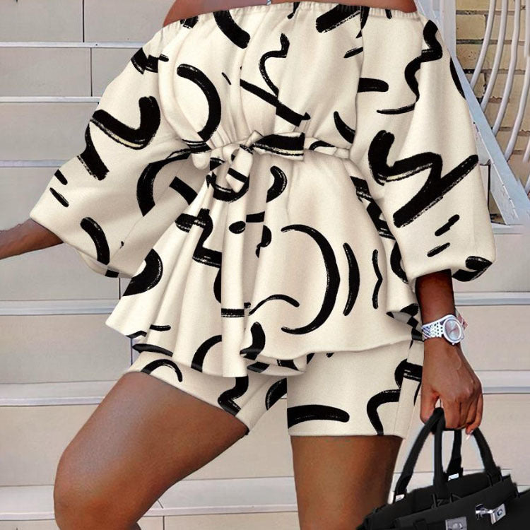 • Load image into Gallery viewer, Fashion printed one-shoulder suit AY2674