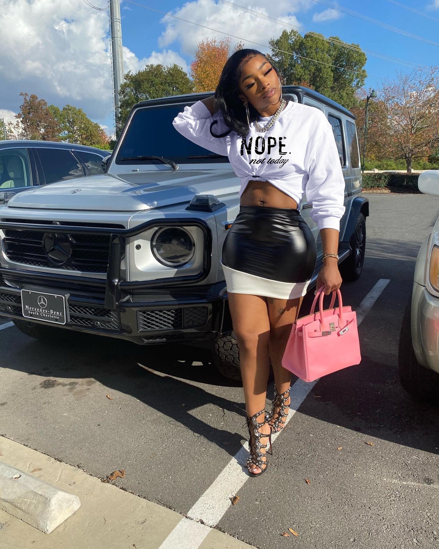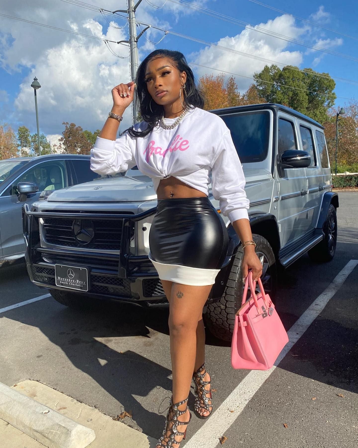 long-sleeved T-shirt short skirt suit two-piece patchwork leather skirt AY2610
