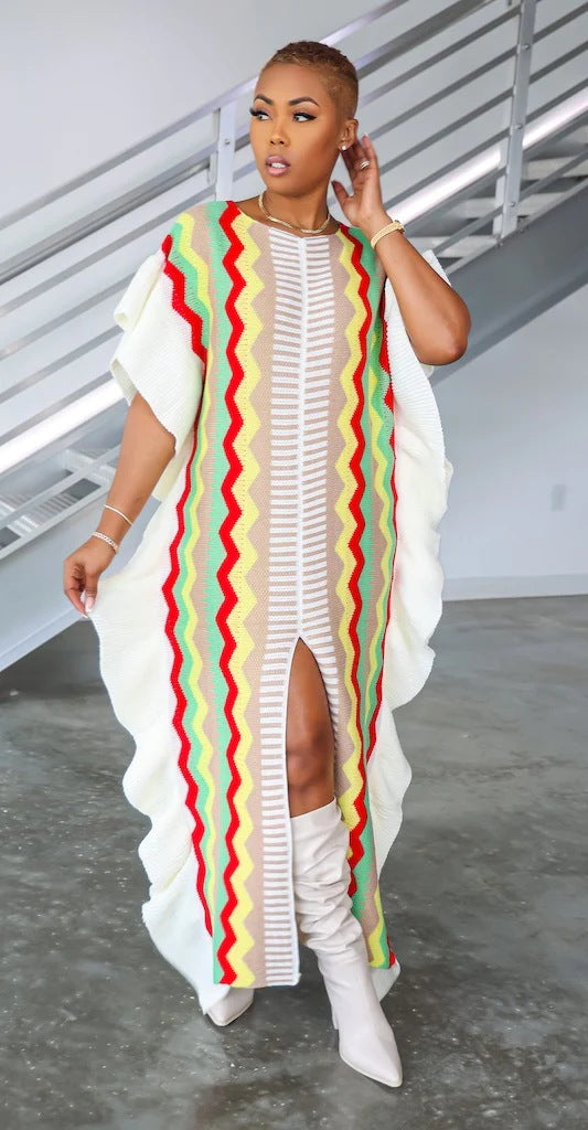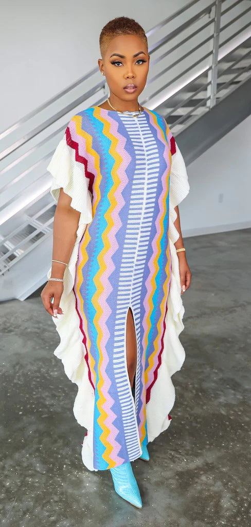 Ruffle knit split long skirt AY3069