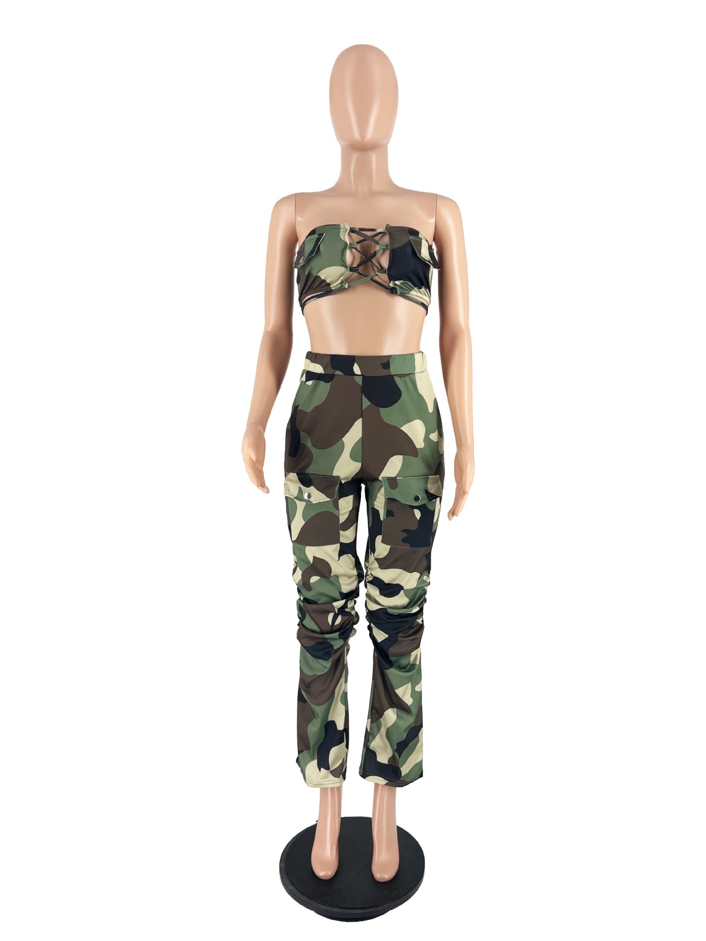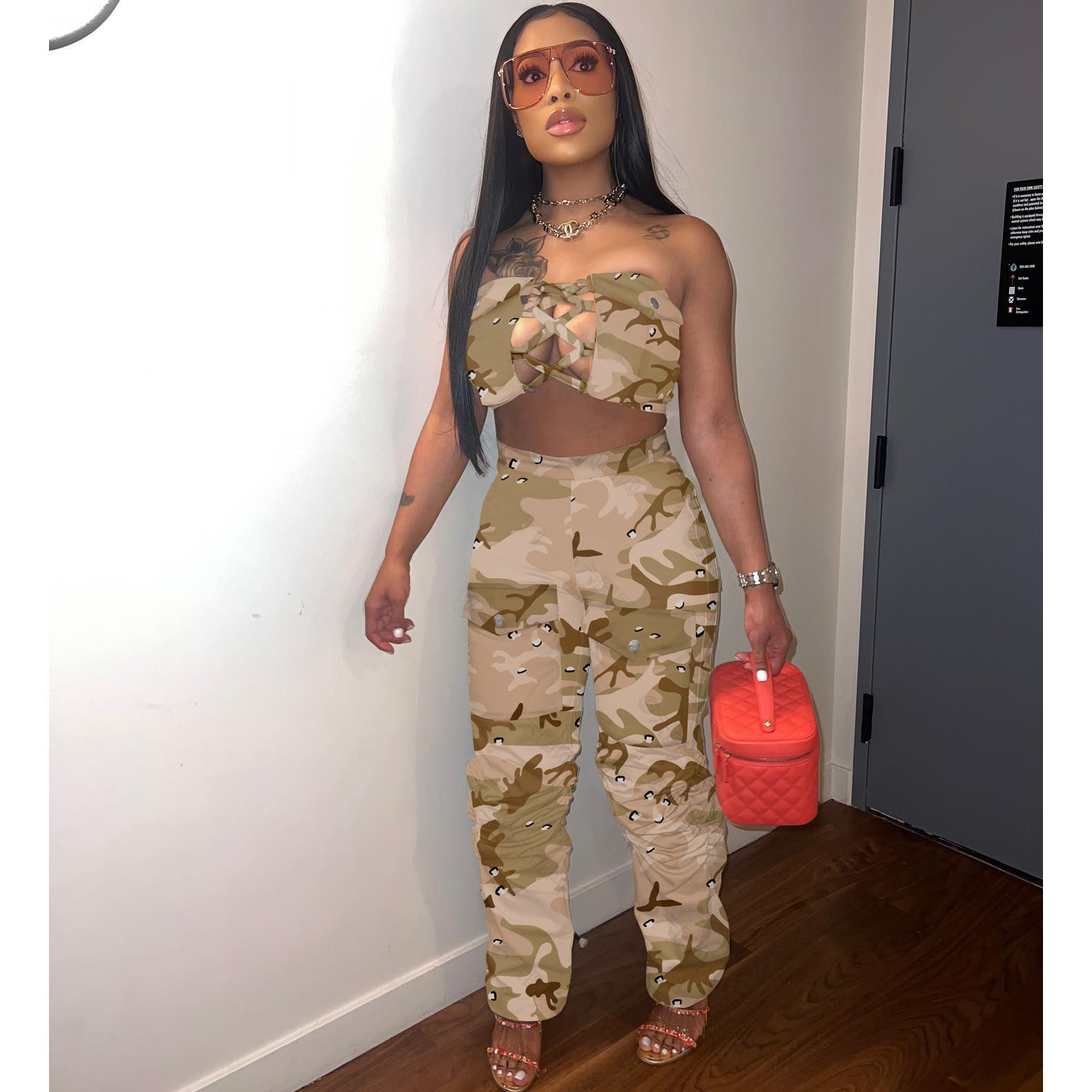 Sleeveless bandaged chest wrap vest pants two-piece sports suit AY2684