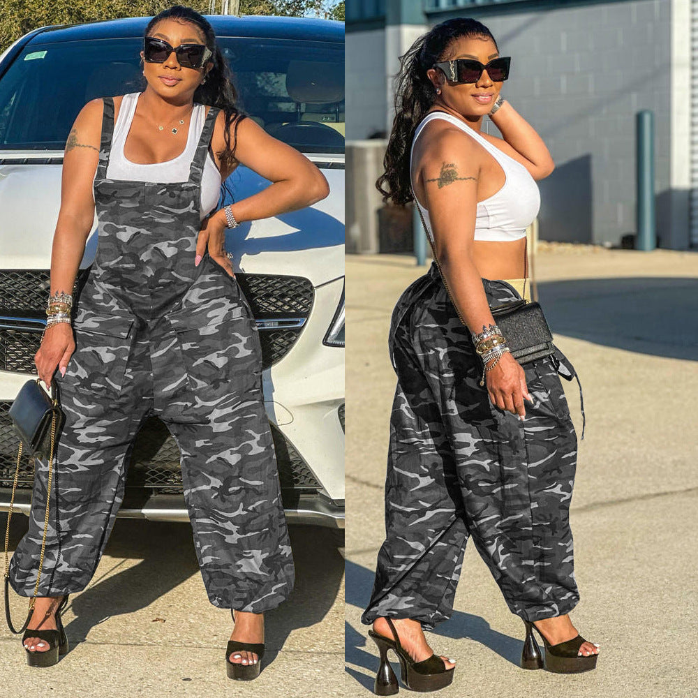 Strap Camo Pants Printed Loose Bodysuit AY2708