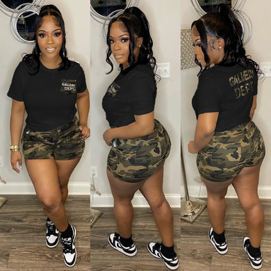 Letter printed camouflage short sleeved shorts set AY2891