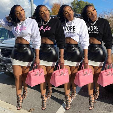 long-sleeved T-shirt short skirt suit two-piece patchwork leather skirt AY2610
