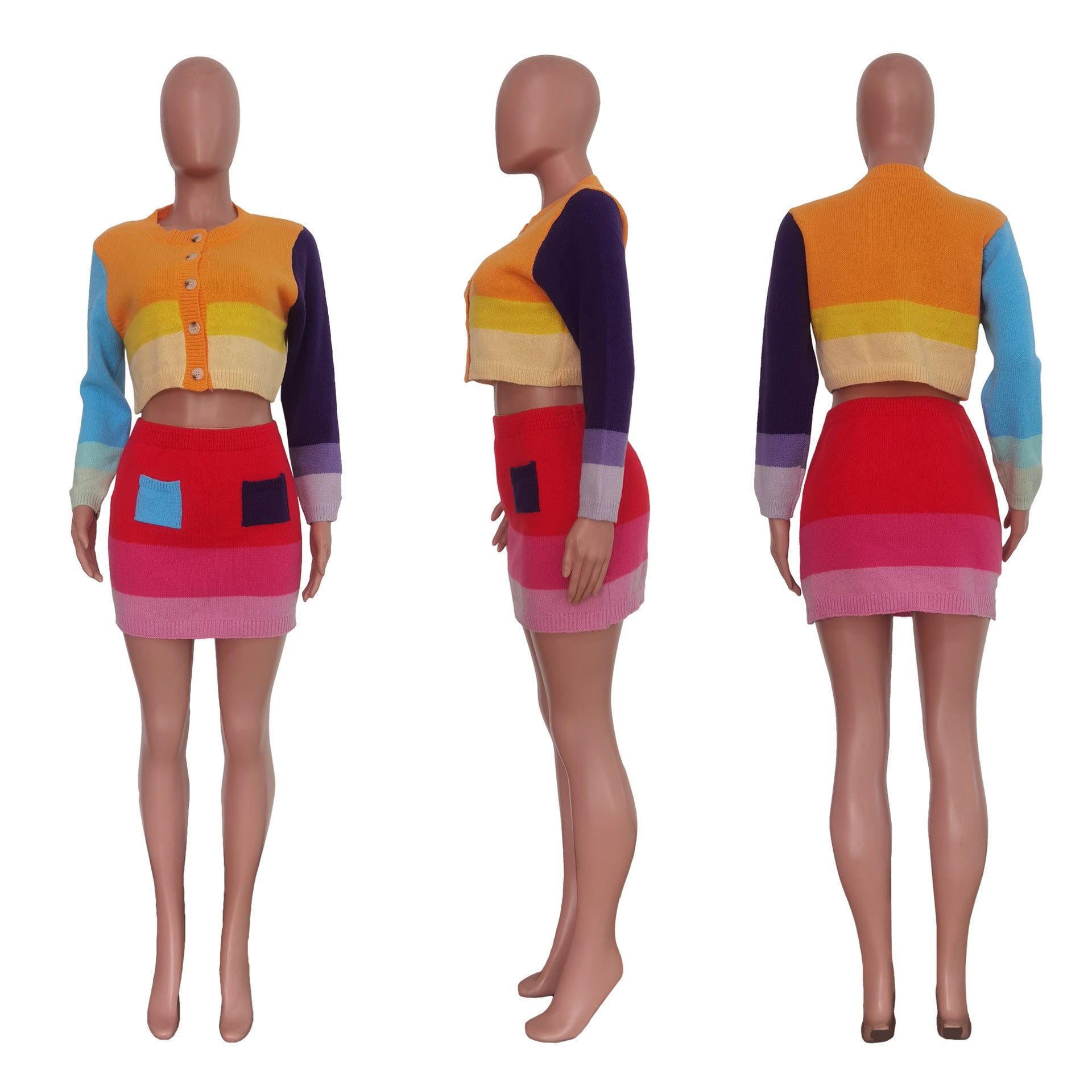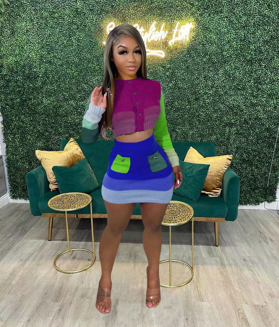 • Load image into Gallery viewer, Knitted color contrast skirt suit(AY2524)