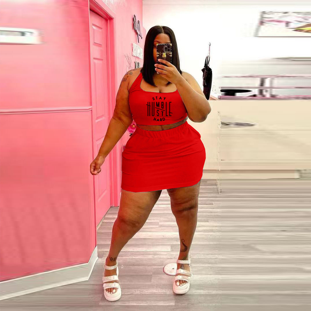 Plus size letter print casual skirt suit AY1140