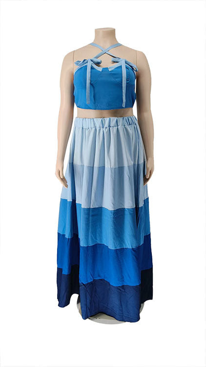 Sexy stitching sleeveless hem skirt suit(AY2232)