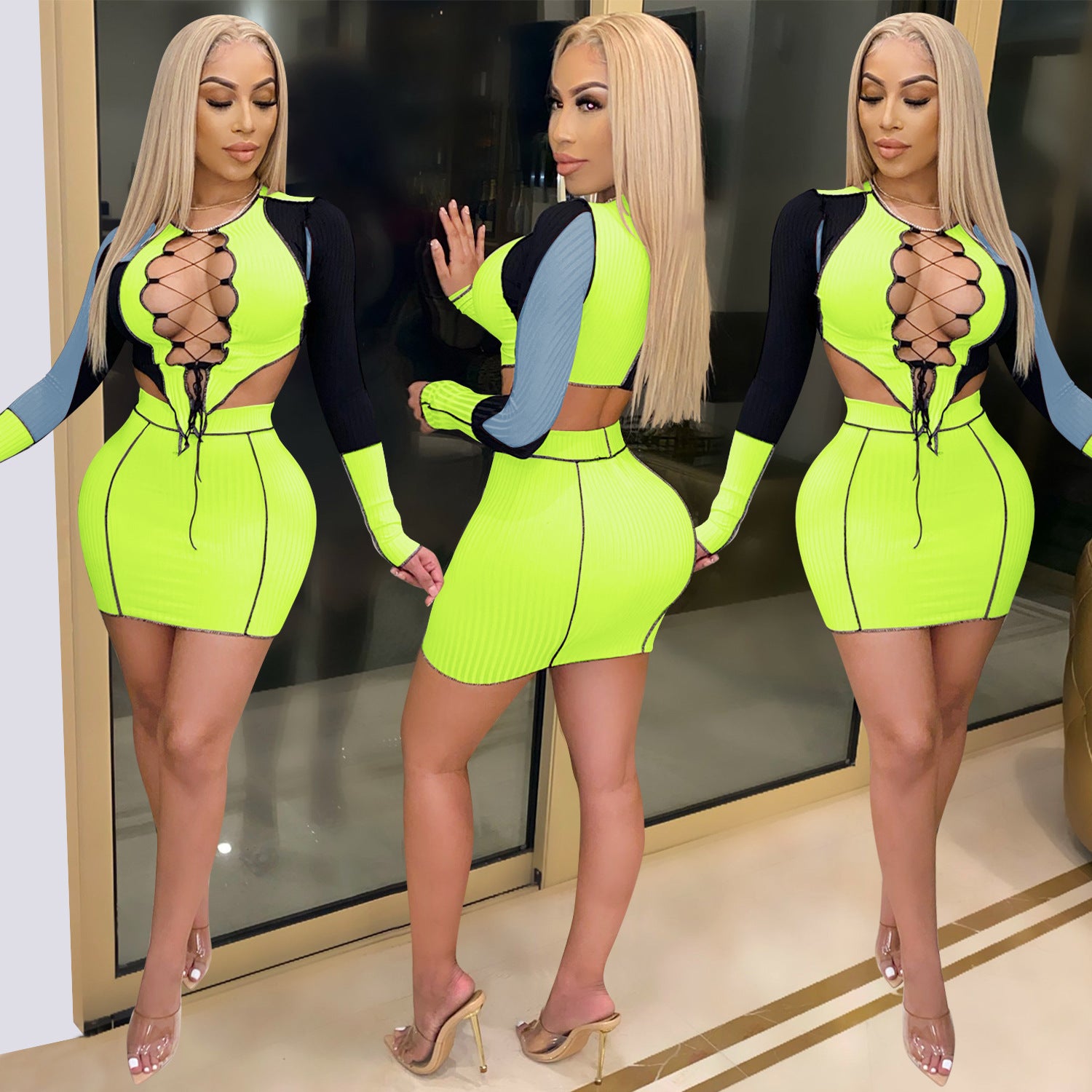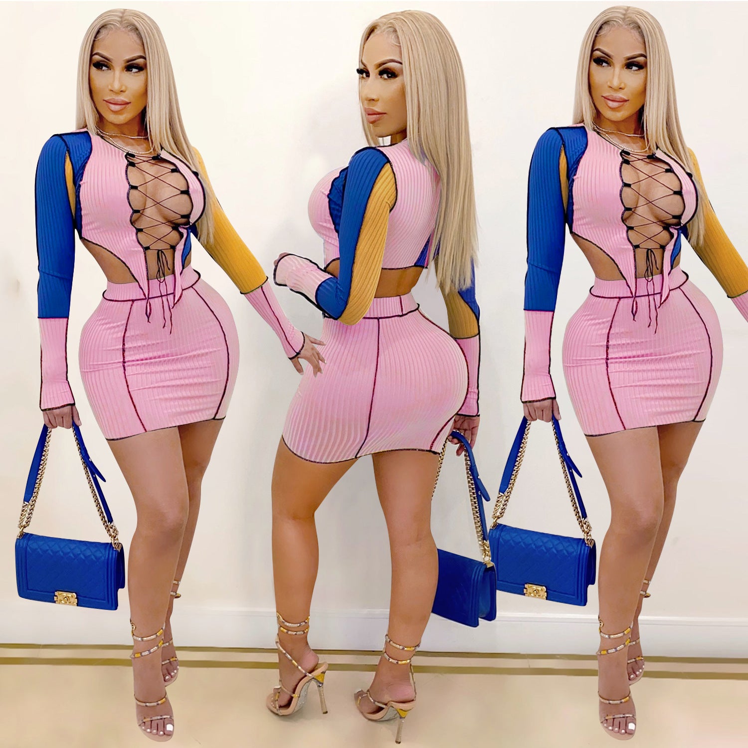 Sexy Tie Tight Knitted Thread Two Piece Set(AY1723)