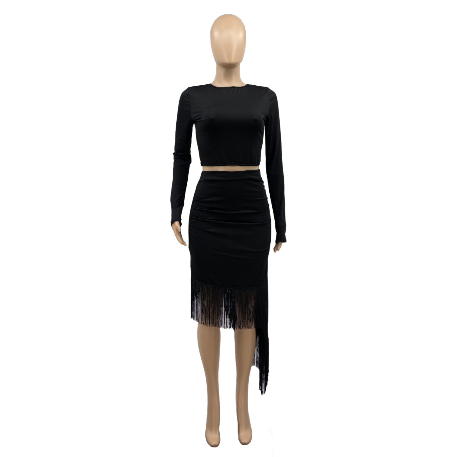• Load image into Gallery viewer, T-shirt fringed skirt two-piece set(AY2318)